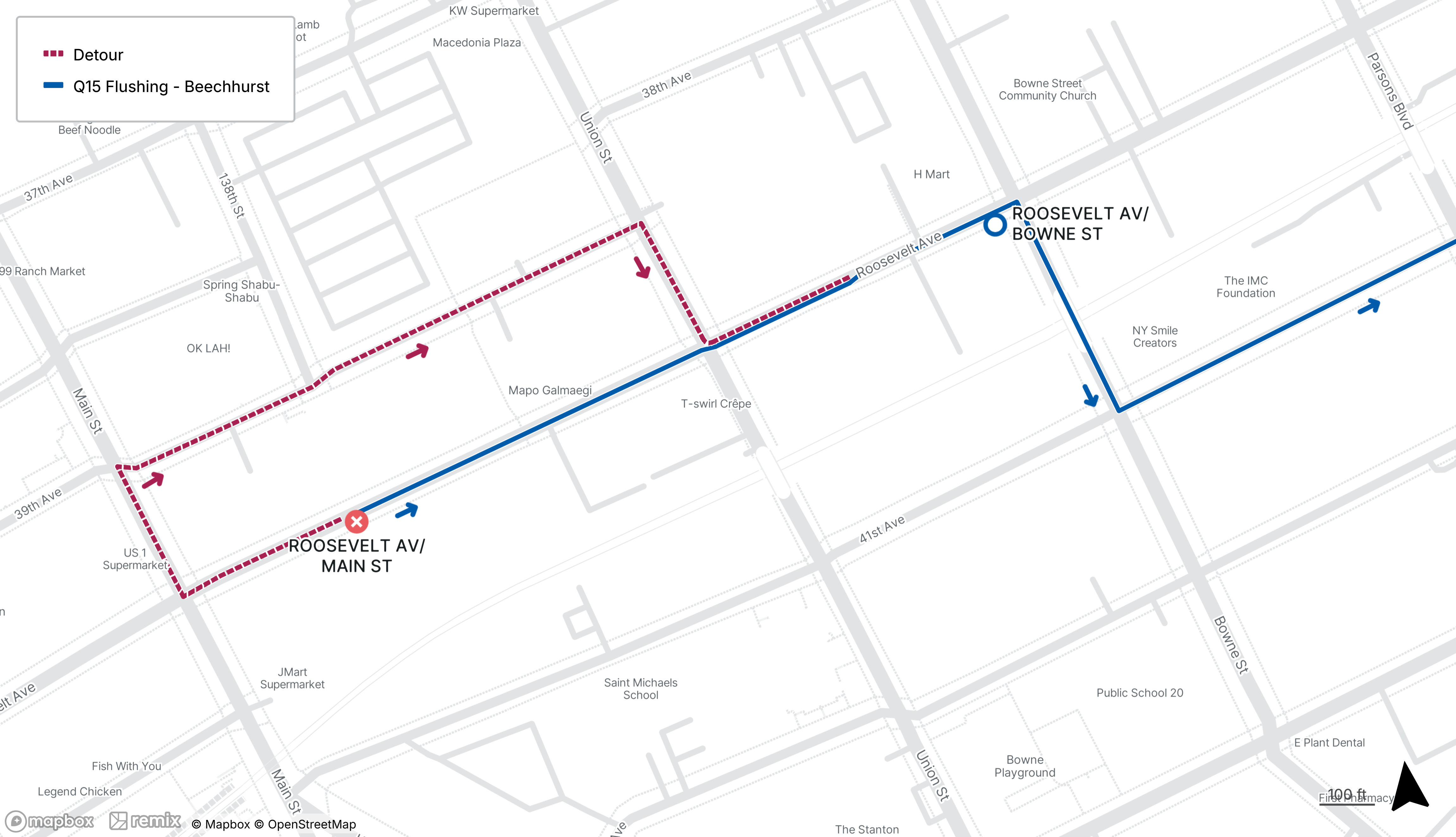 Northbound Q15 stop on Roosevelt Ave at Main St will be closed