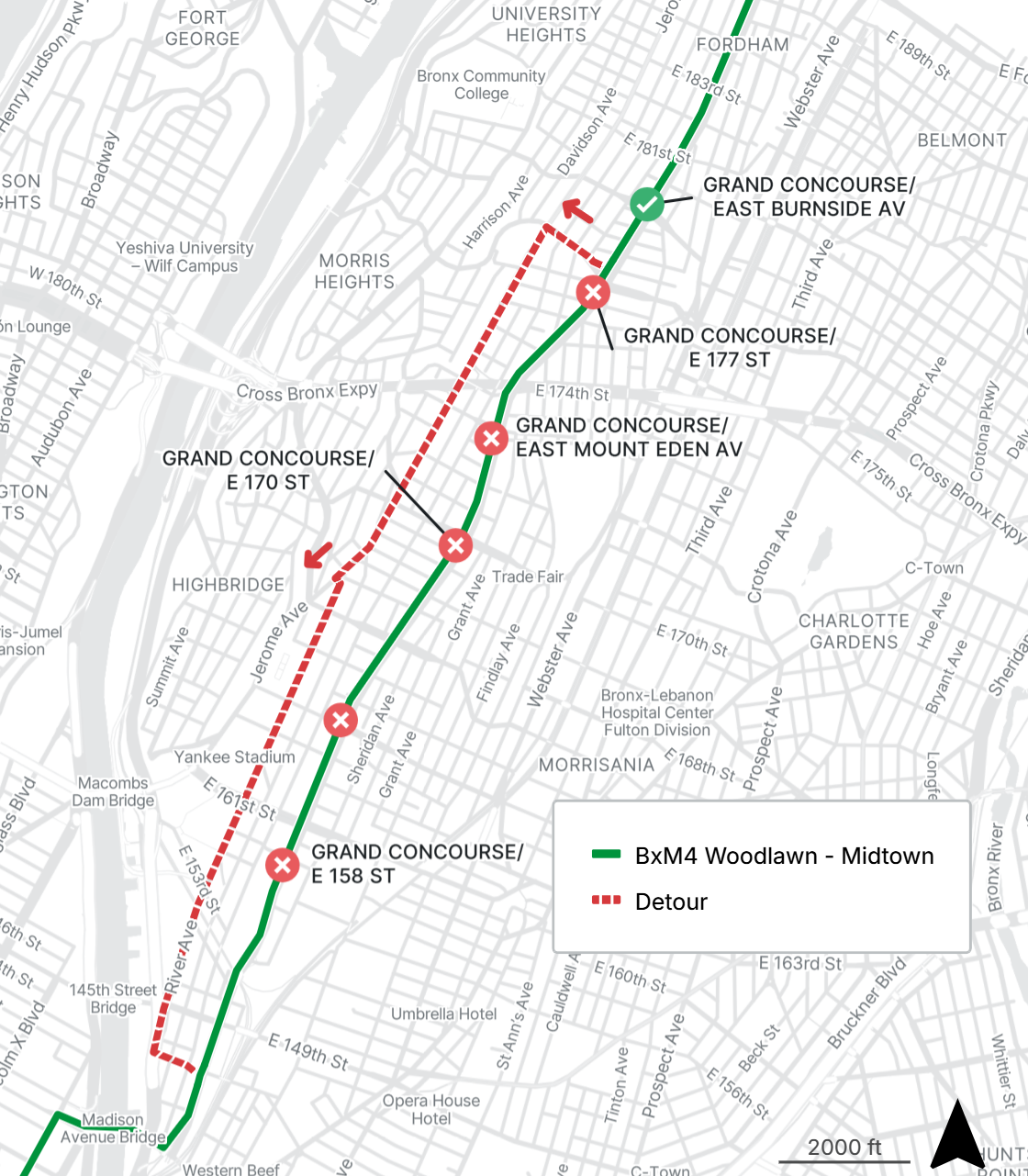 Southbound BxM4 stops along Grand Concourse from E 177th St to E 158th St are closed