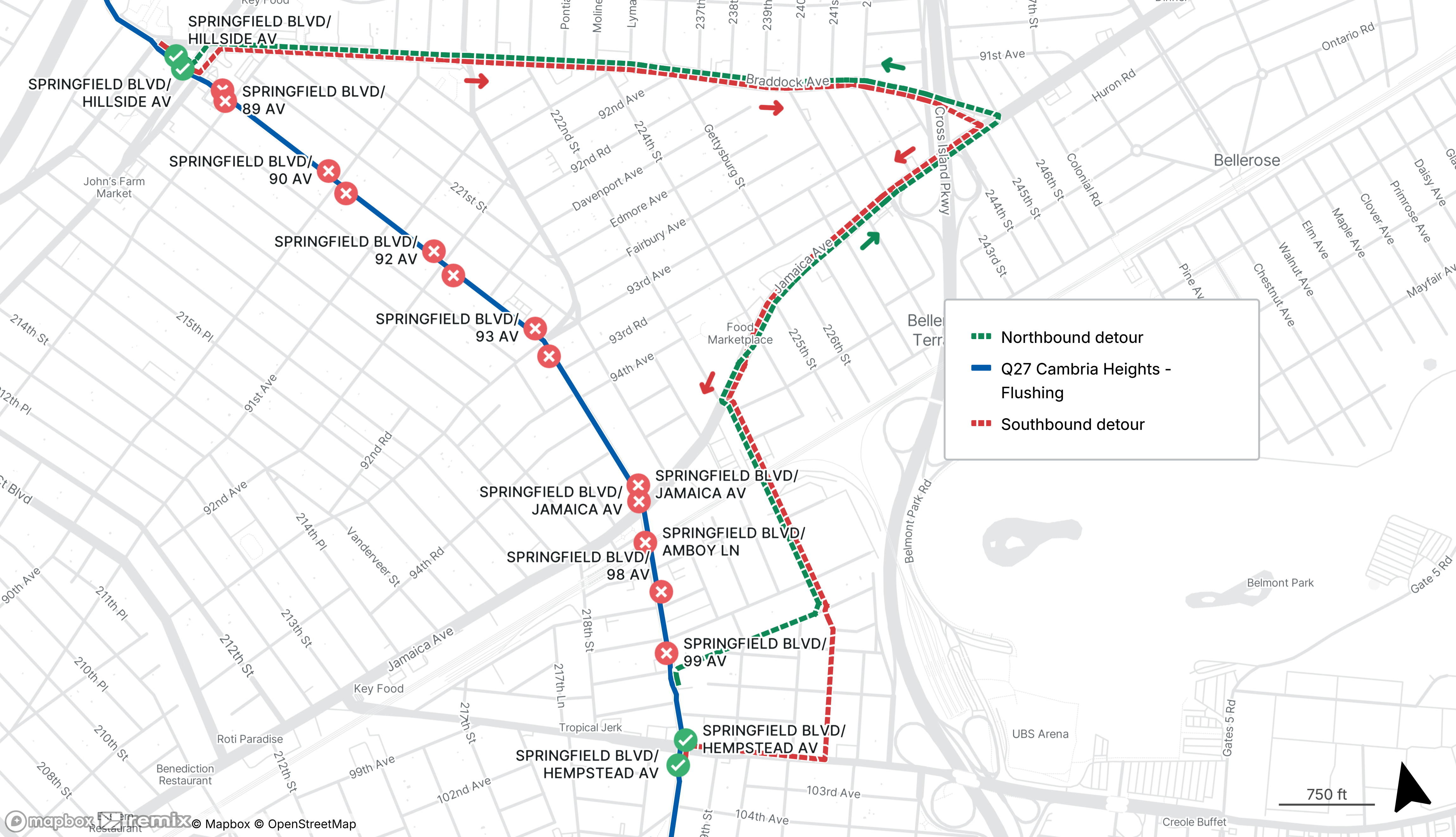 Q27 buses will be detoured from Springfield Blvd between Hempstead Ave and Hillside Ave