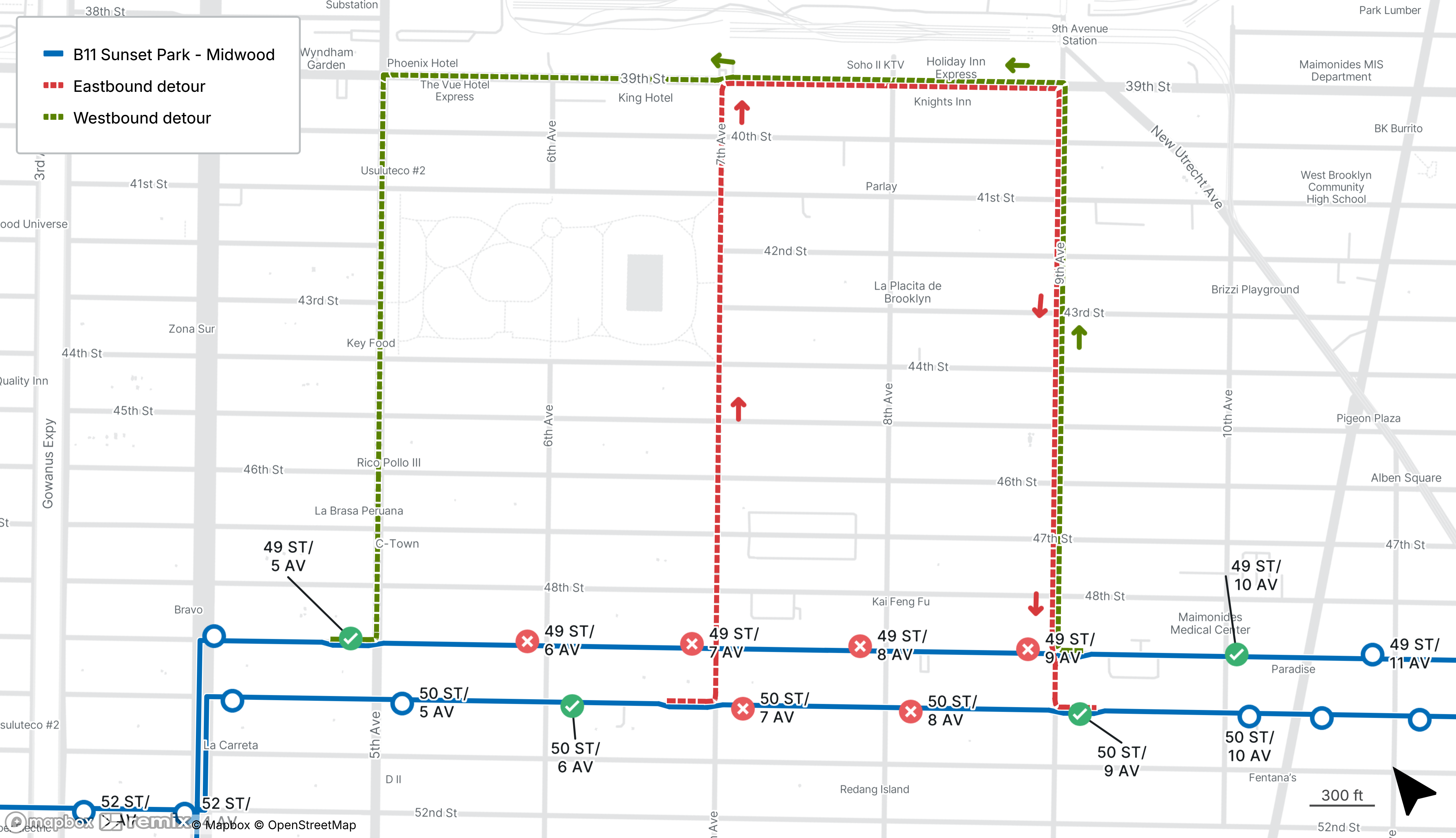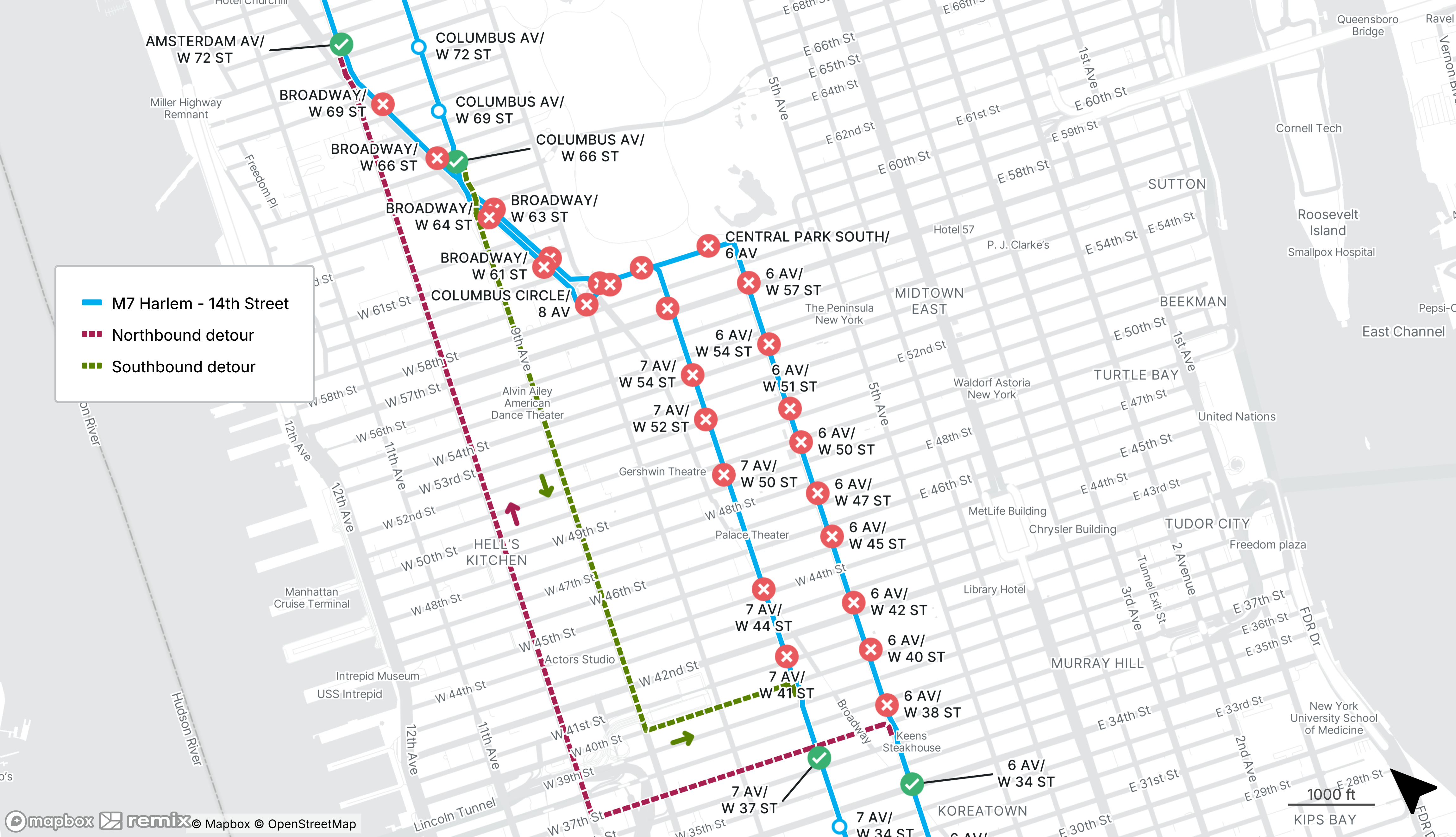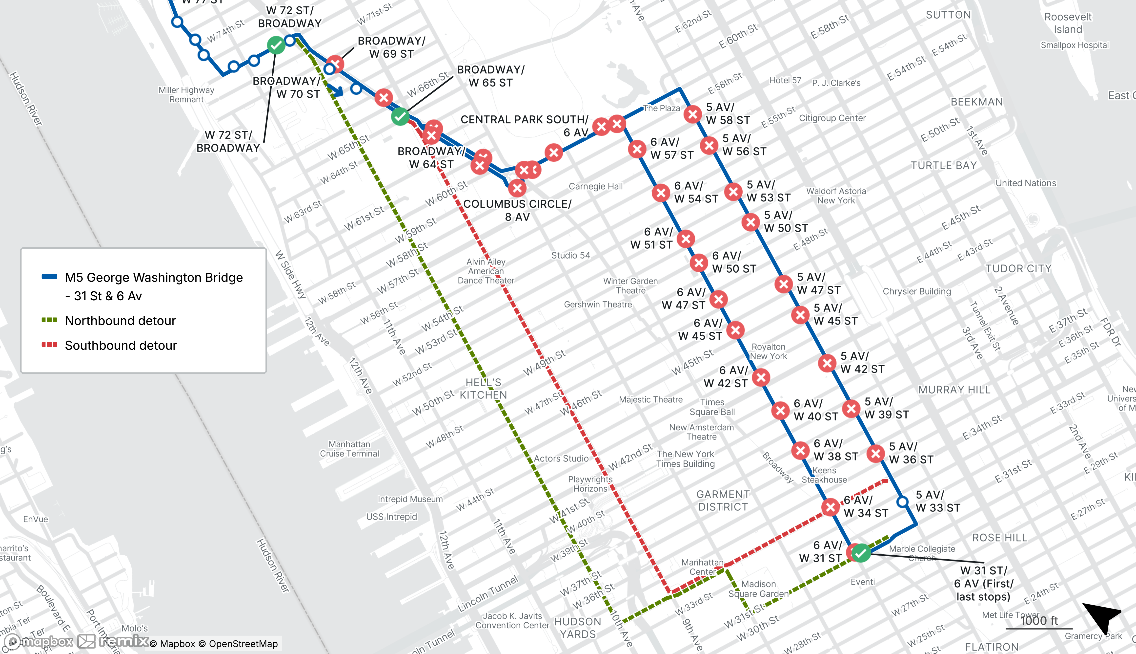 Starts Tue Mar 17 Until Tue Mar 17The last stop before the detour will be made on 6th Ave at W 42nd St.