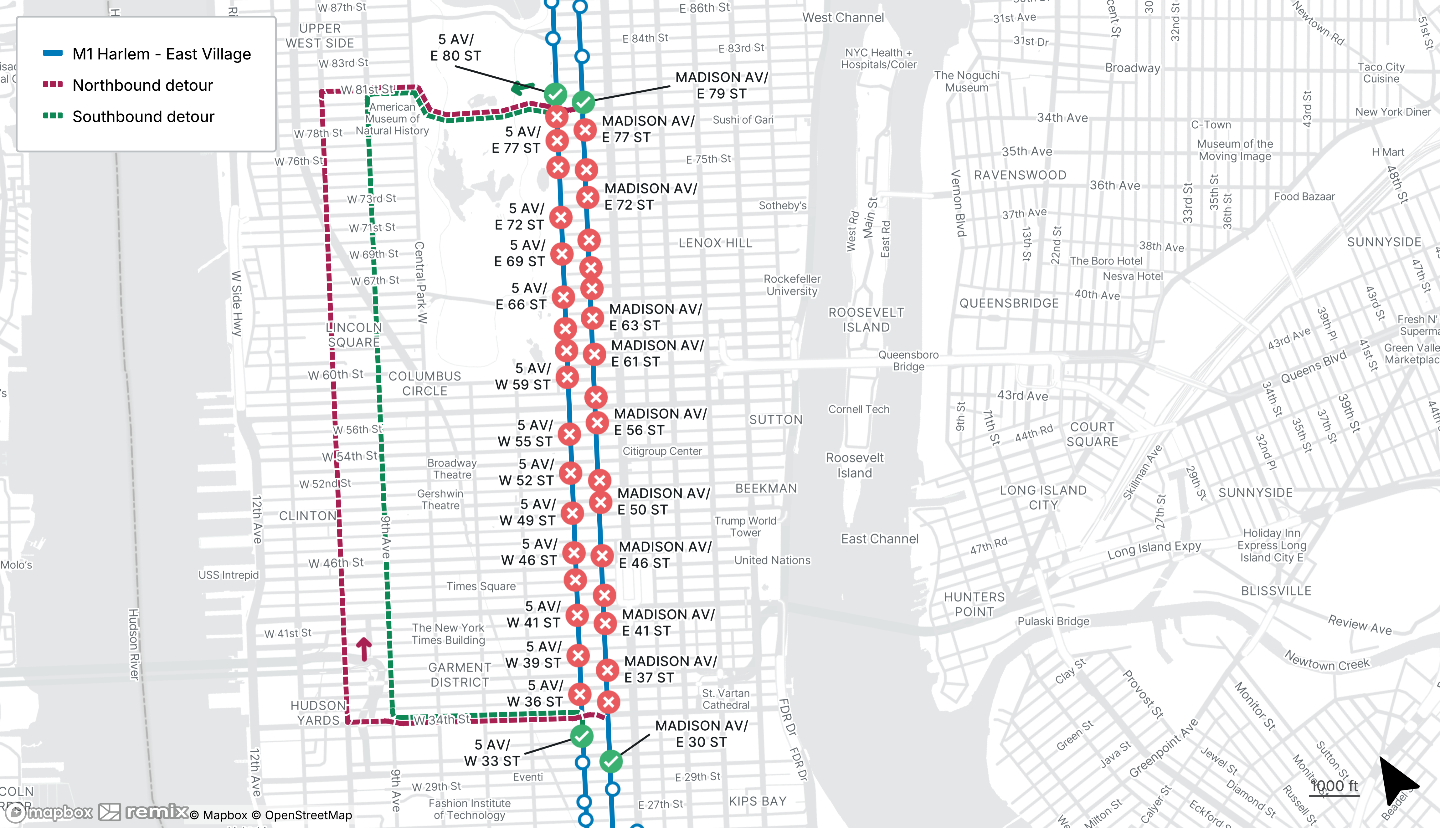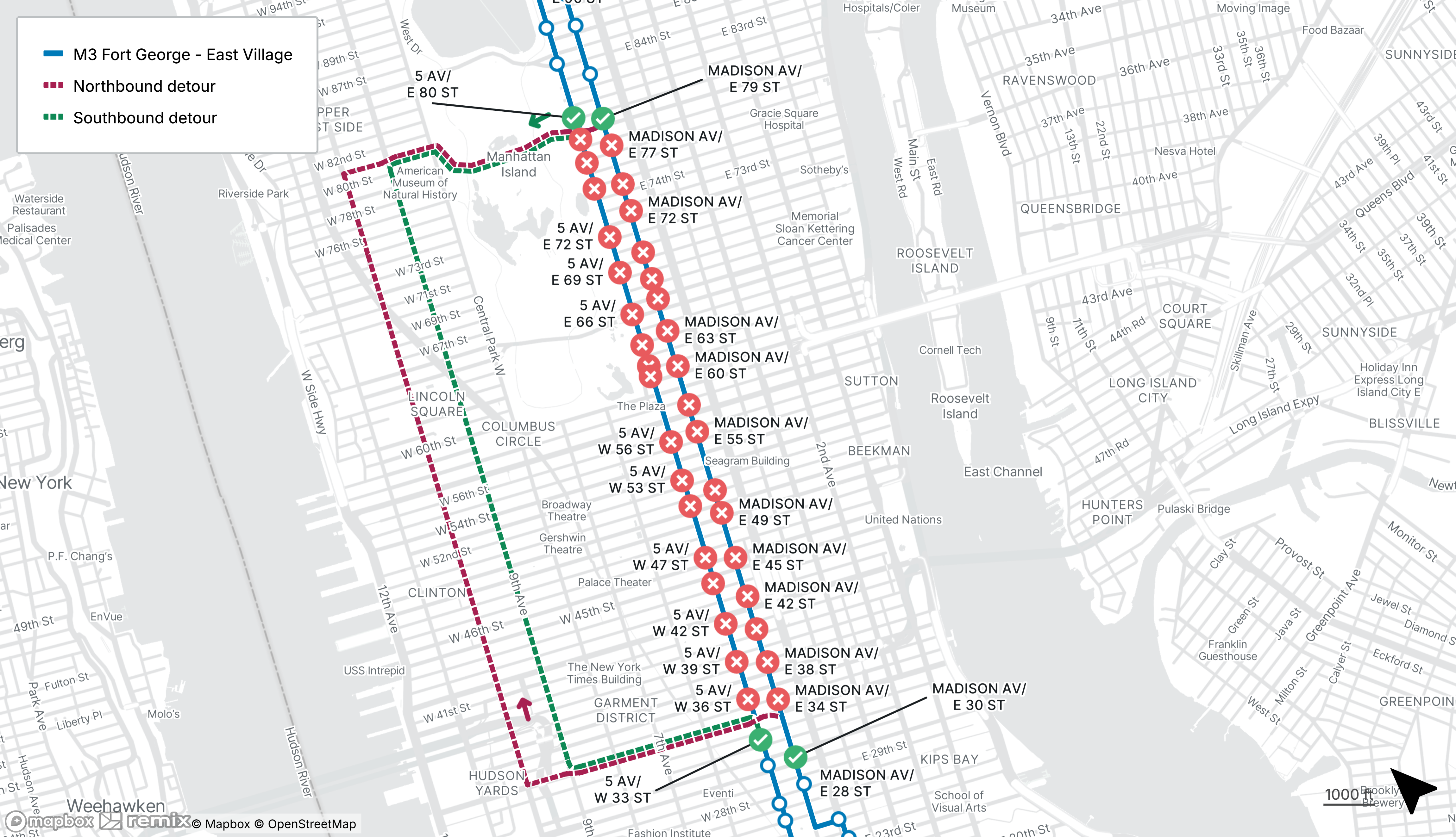 Started Mon Jul 21 2025 Until Sun Jun 14Please use the stops on 1st Ave at E 75th St or E 81st St instead.