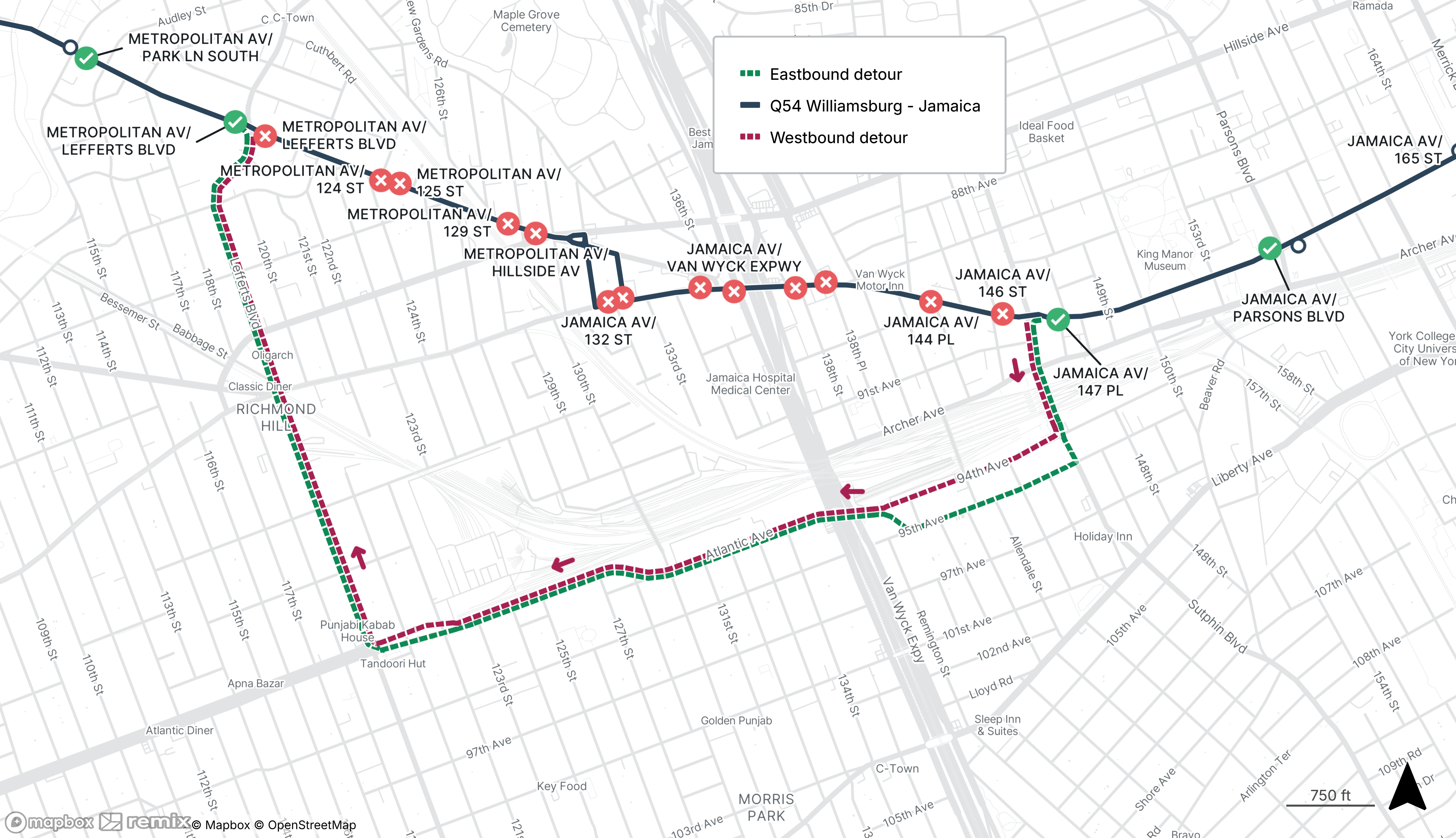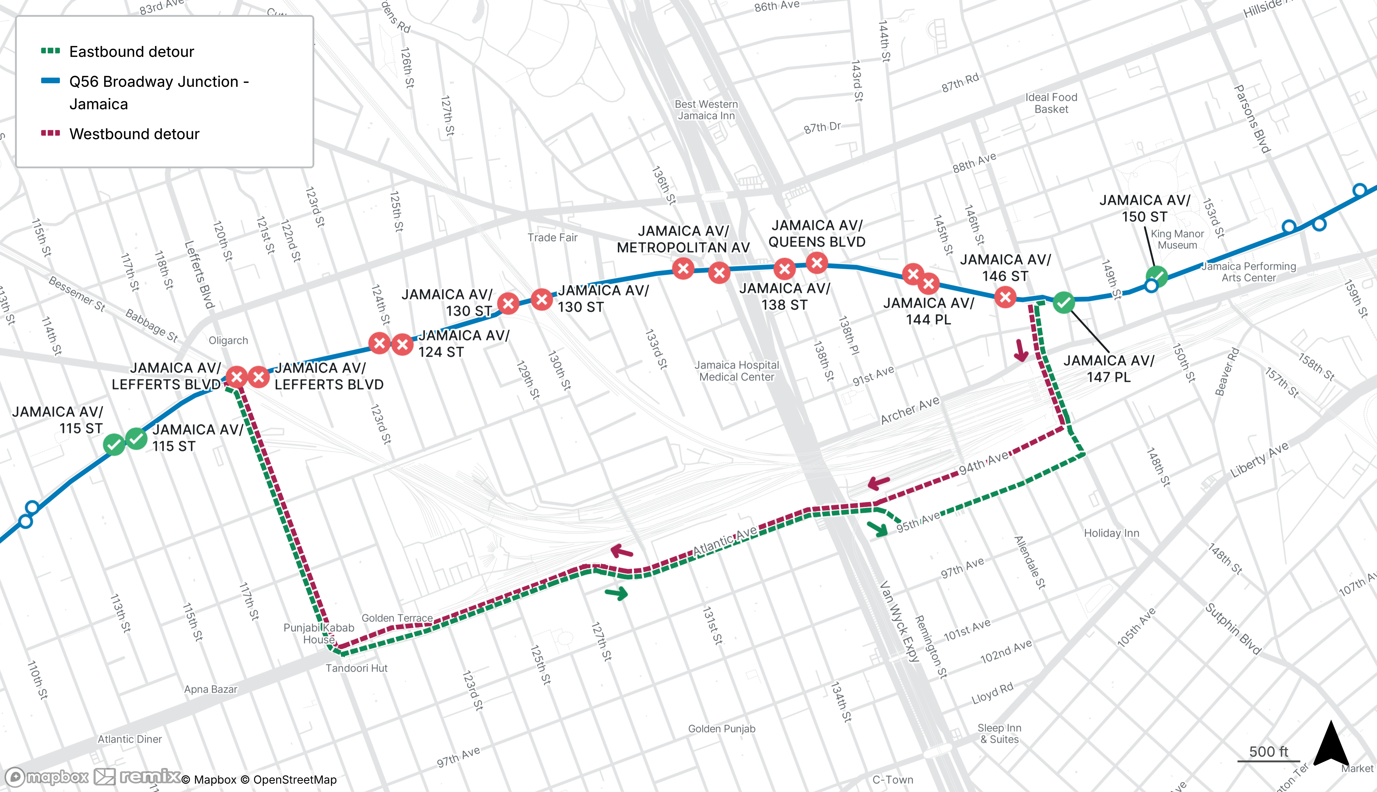 The last westbound stop before the detour will be made on Rockaway Beach Blvd at Beach 92nd St.