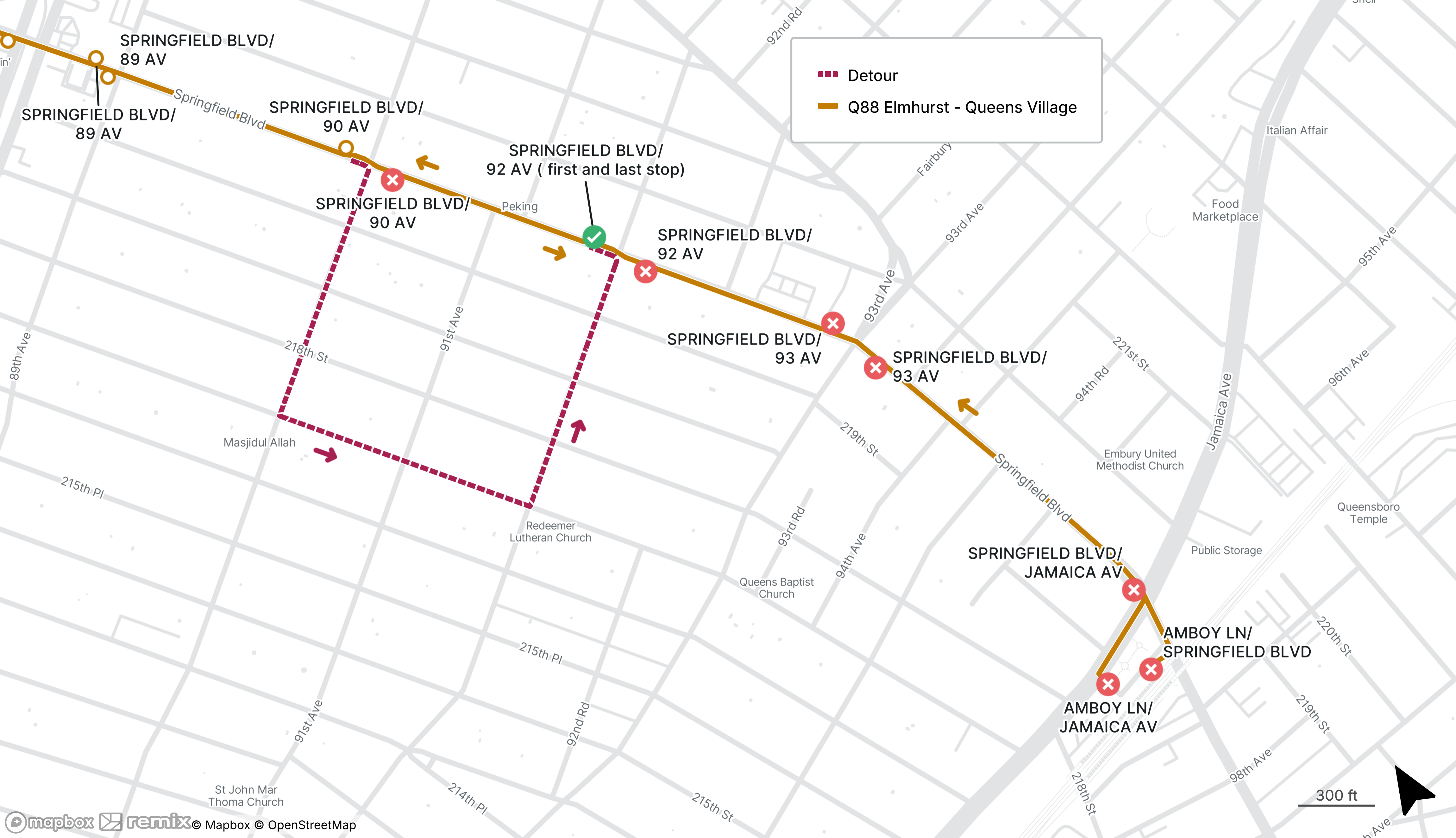 Starts Sun Mar 8 Until Sun Mar 8For service, use the stops on Springfield Blvd at Hempstead Ave or Hillside Ave in both directions.