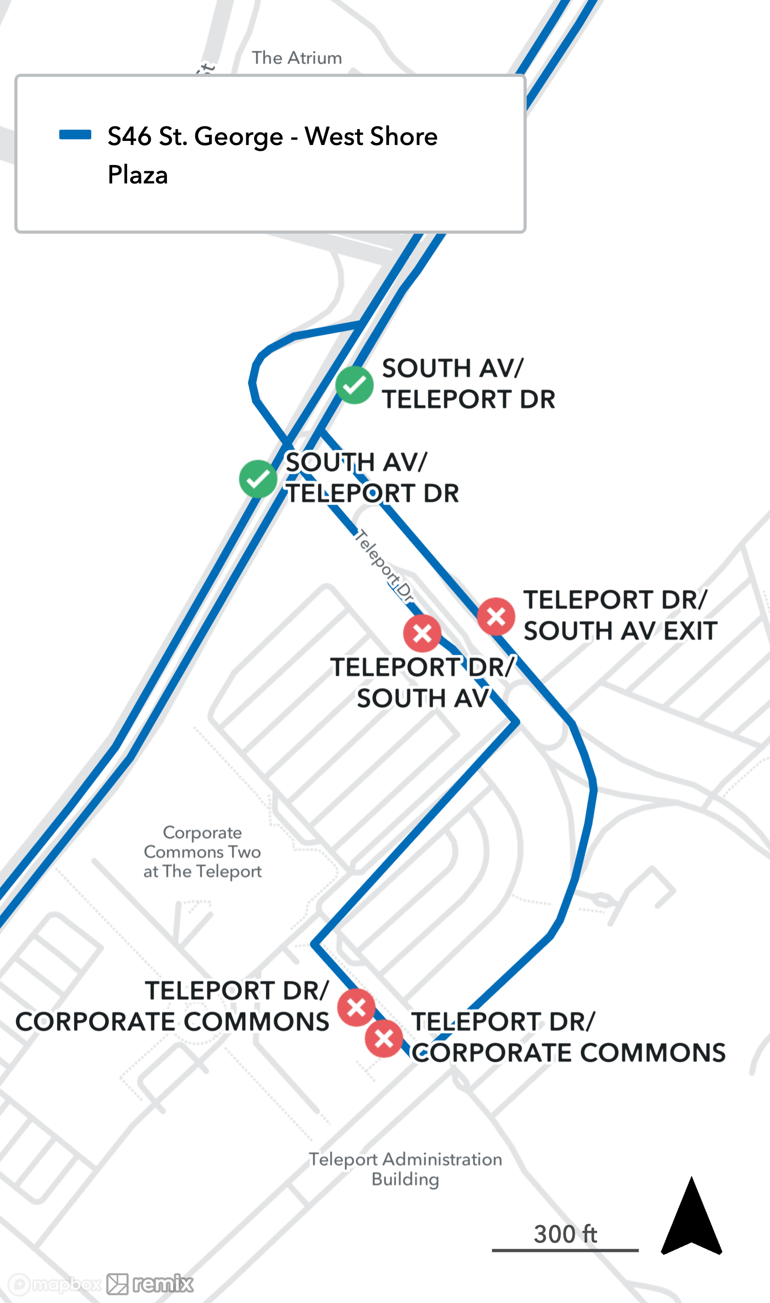 All S46 stops on Teleport Dr will be closed in both directions, please use the stops on South Ave at Teleport Dr instead