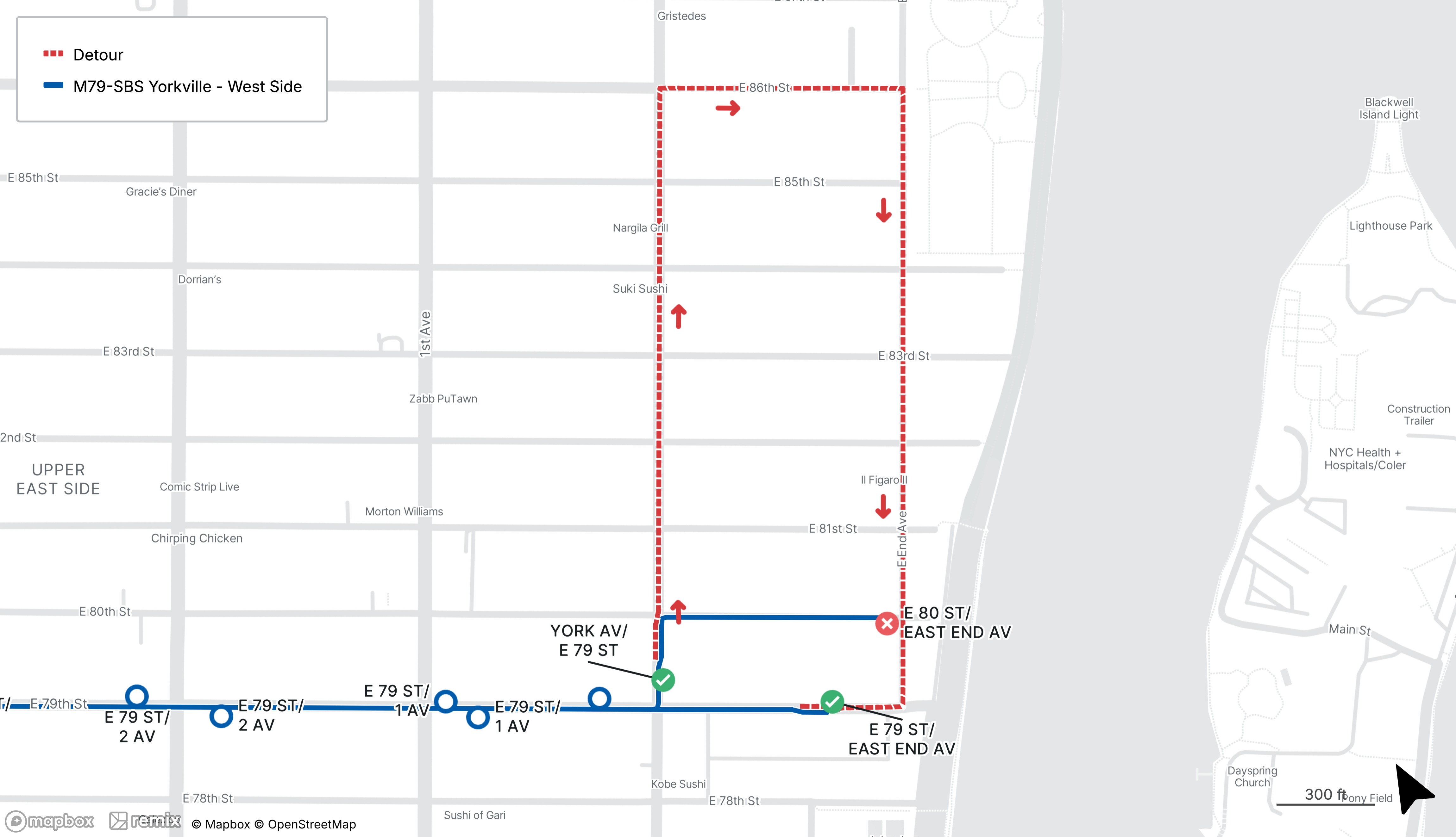 Eastbound M79-SBS stop on E 80th St at East End Ave will be closed.