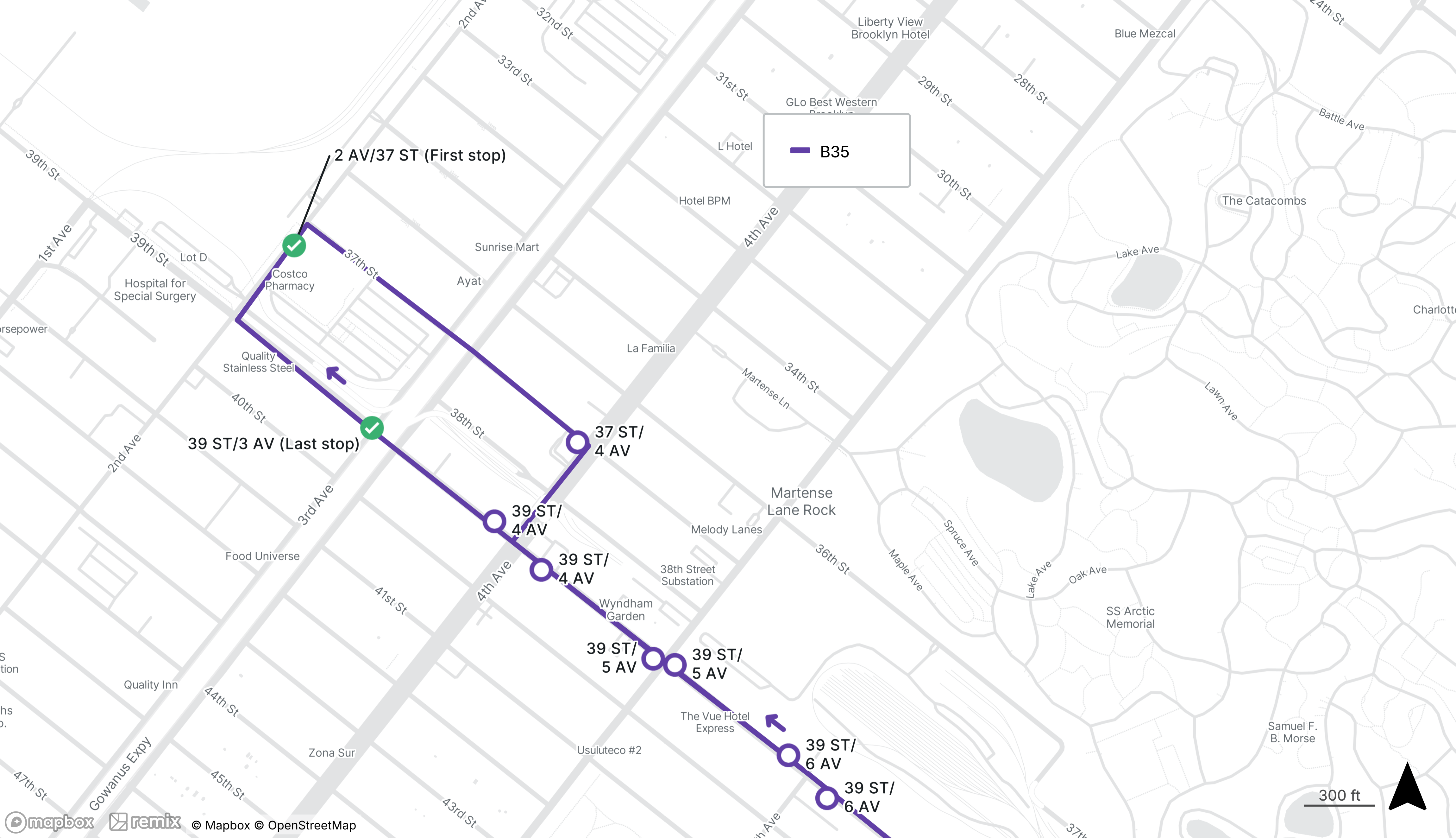 The first Brownsville-bound B35 stop will be made on 2nd Ave at 37th St