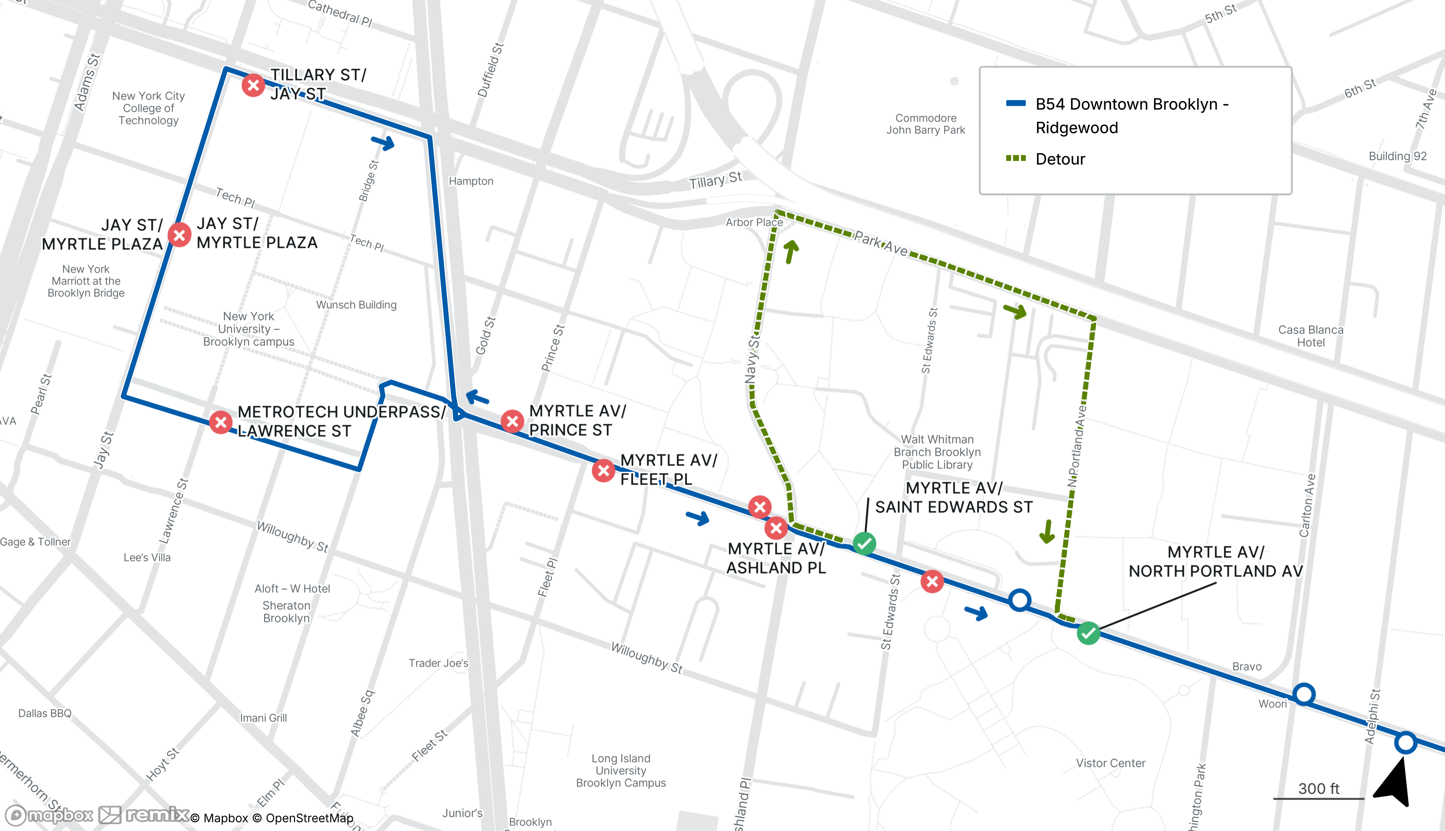 B54 buses will be detoured between Downtown Brooklyn and Ft Greene