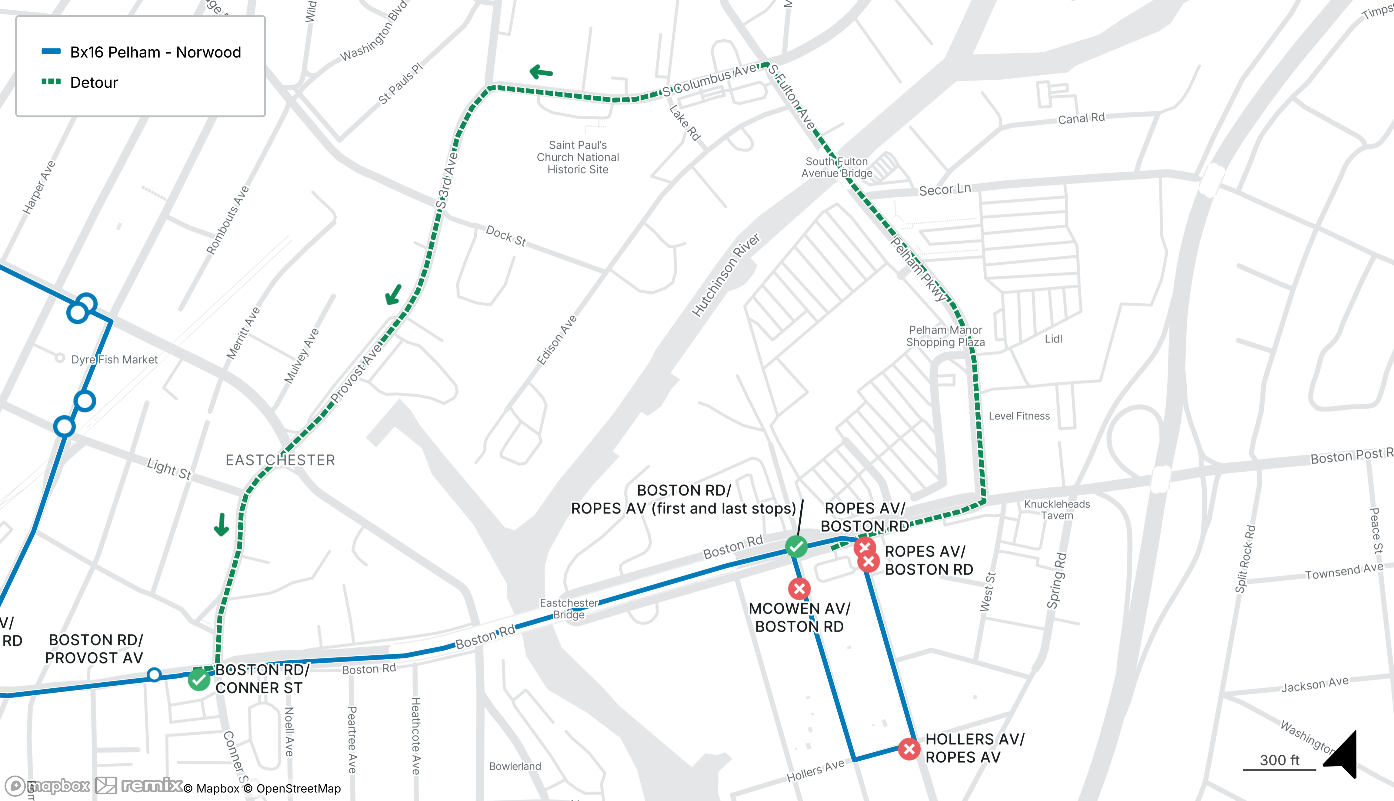 Bx16 buses will be detoured from Boston Rd at Ropes Ave to Provost Ave at Boston Rd