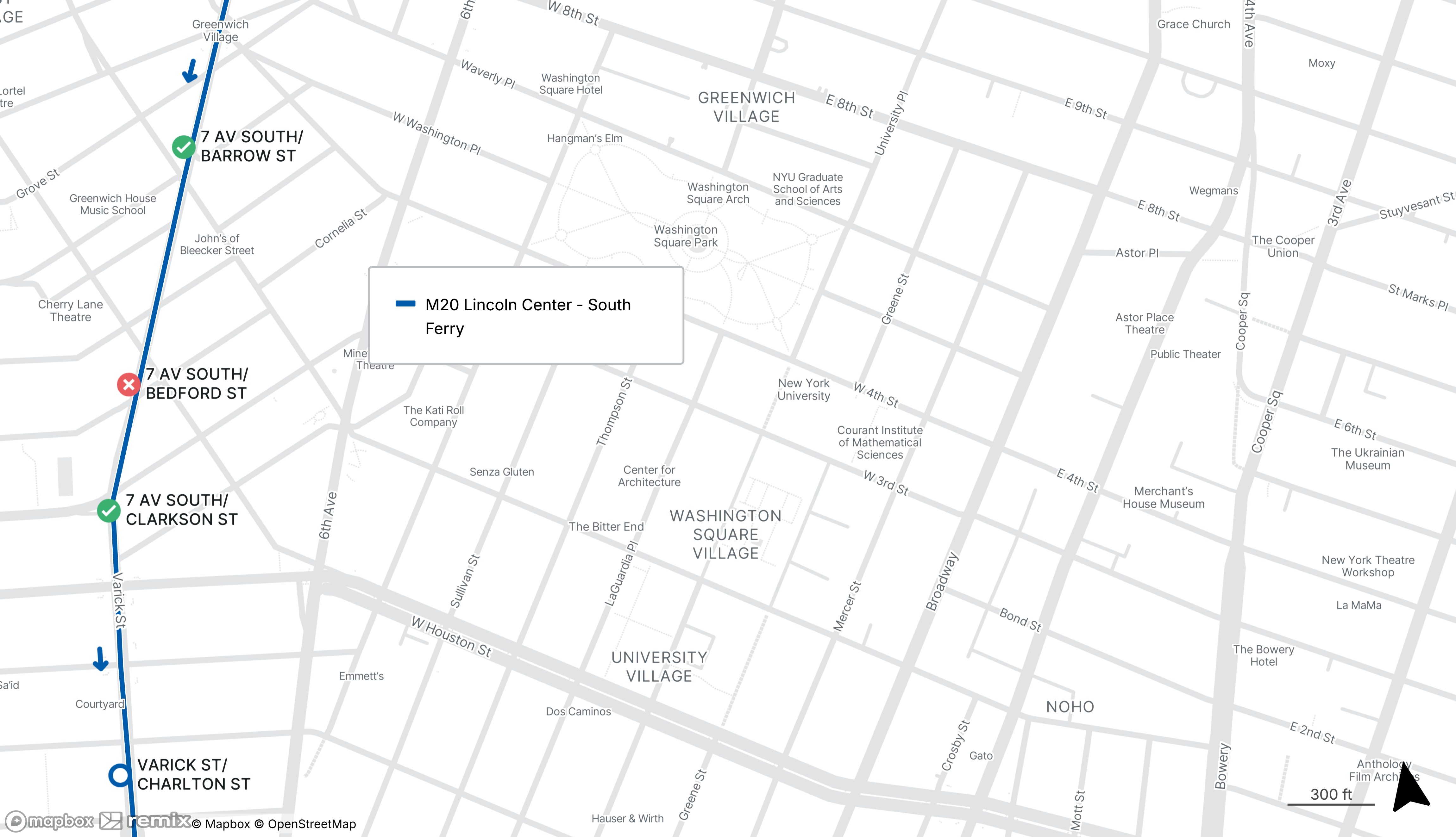 Southbound M20 stop on 7th Ave at Bedford St will be bypassed, use the stop on 7th Ave at Clarkson St