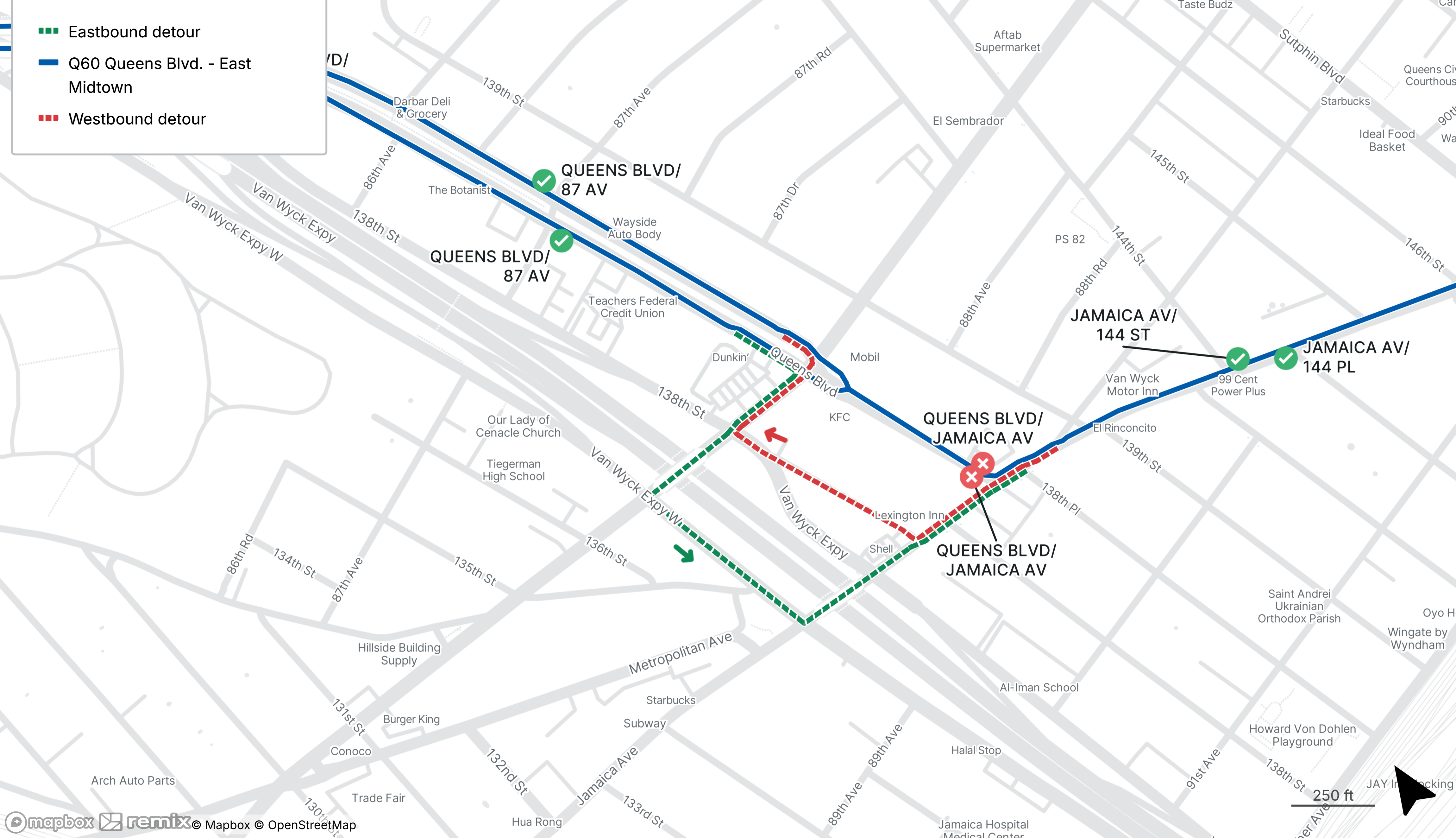 Q60 stops on Jamaica Ave at Queens Blvd in both directions will be closed