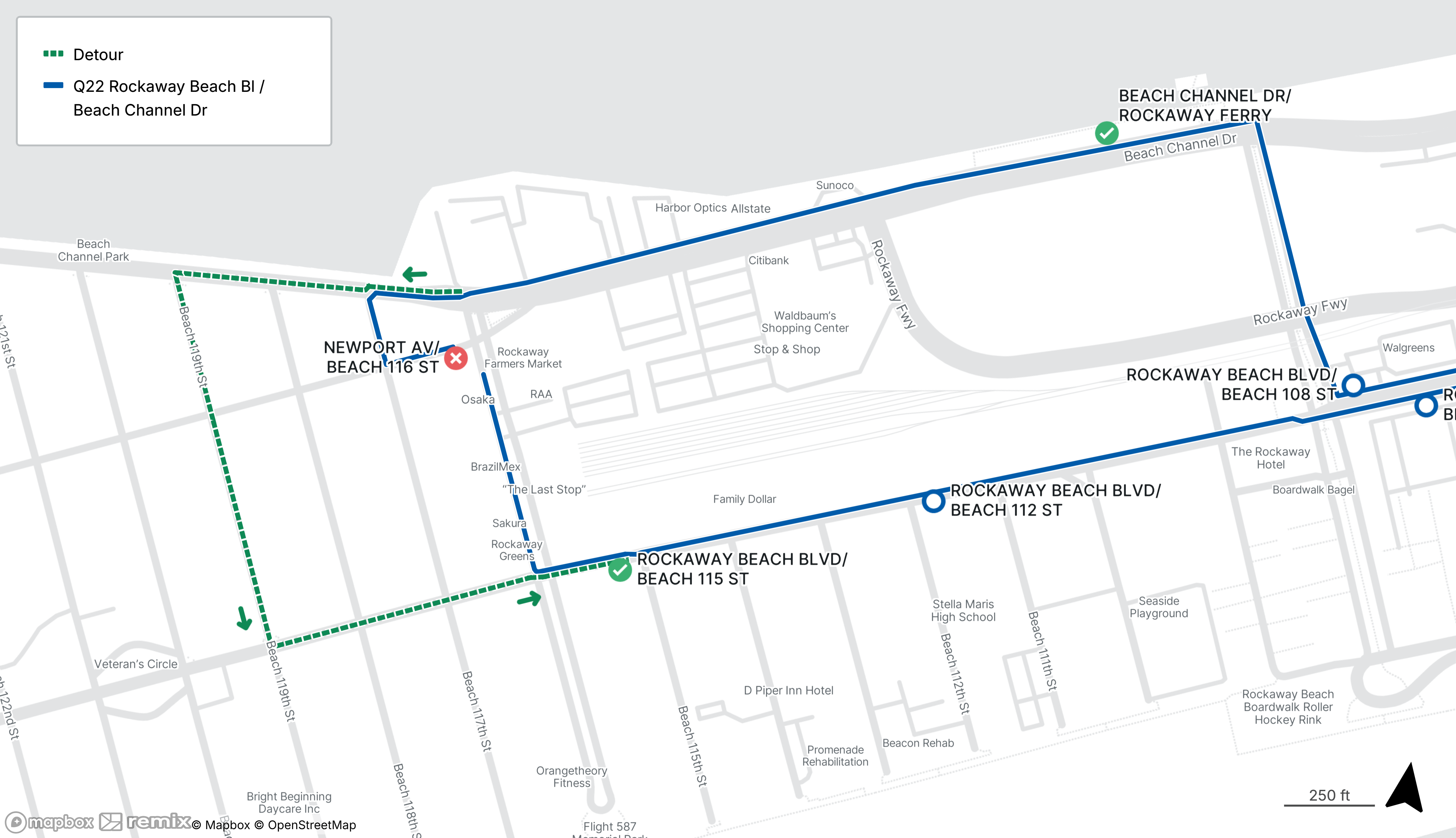Q22 stop on New Port Ave at Beach 116th St will be closed