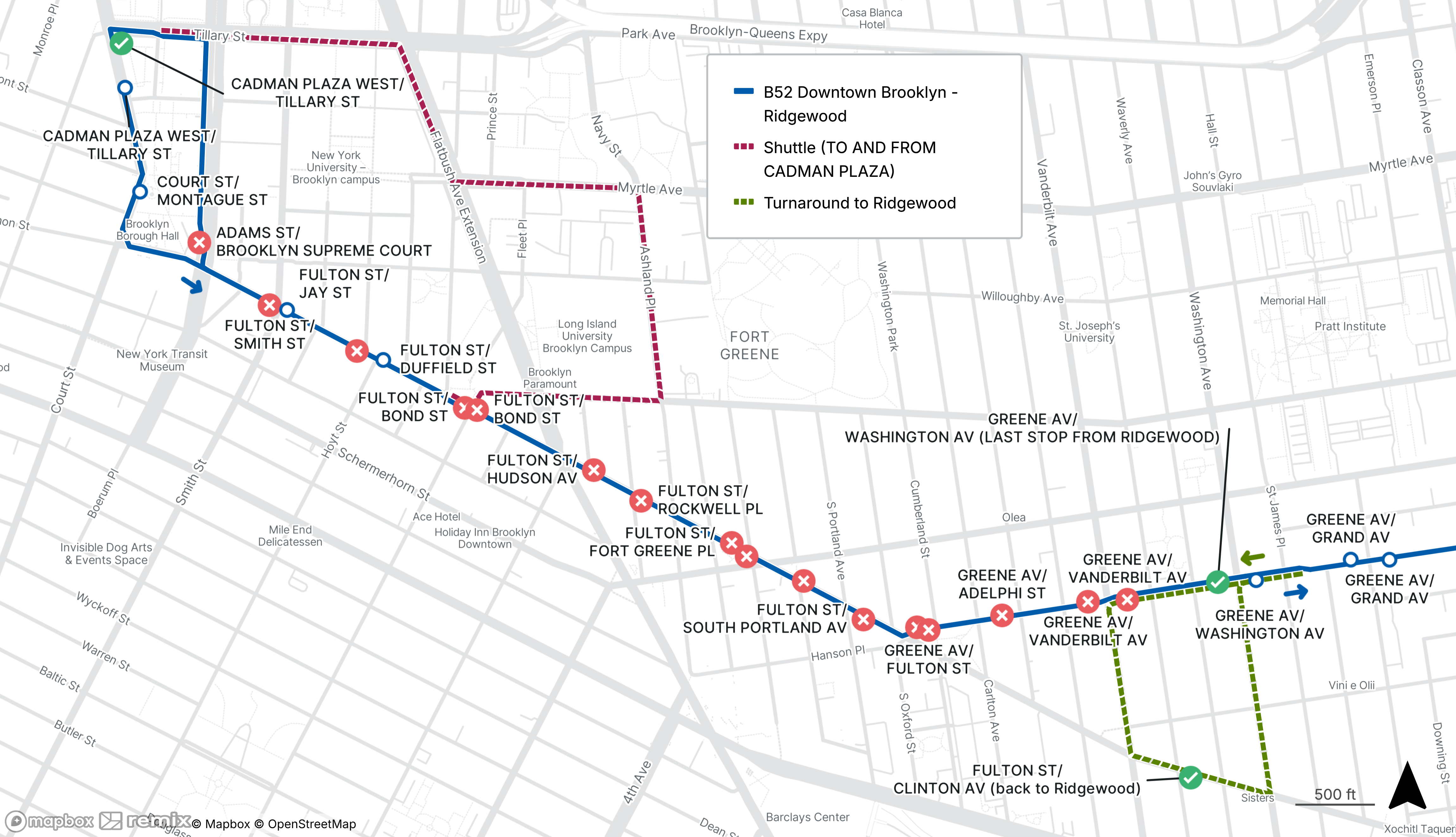 B52 operates in two sections between Cadman Plaza and Fort Greene