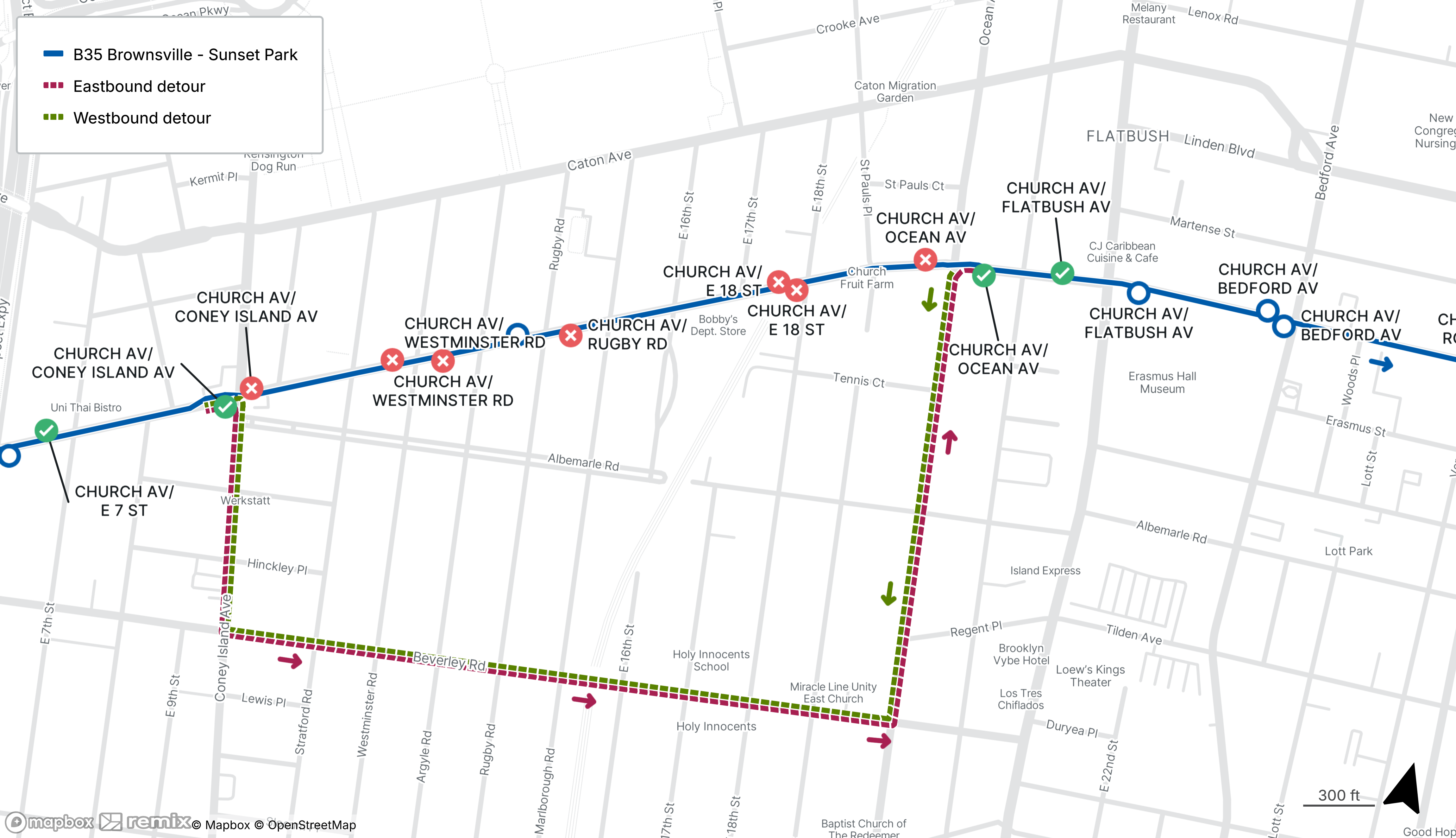 B35 buses will be detoured from Church Ave between Coney Island Ave and Ocean Ave