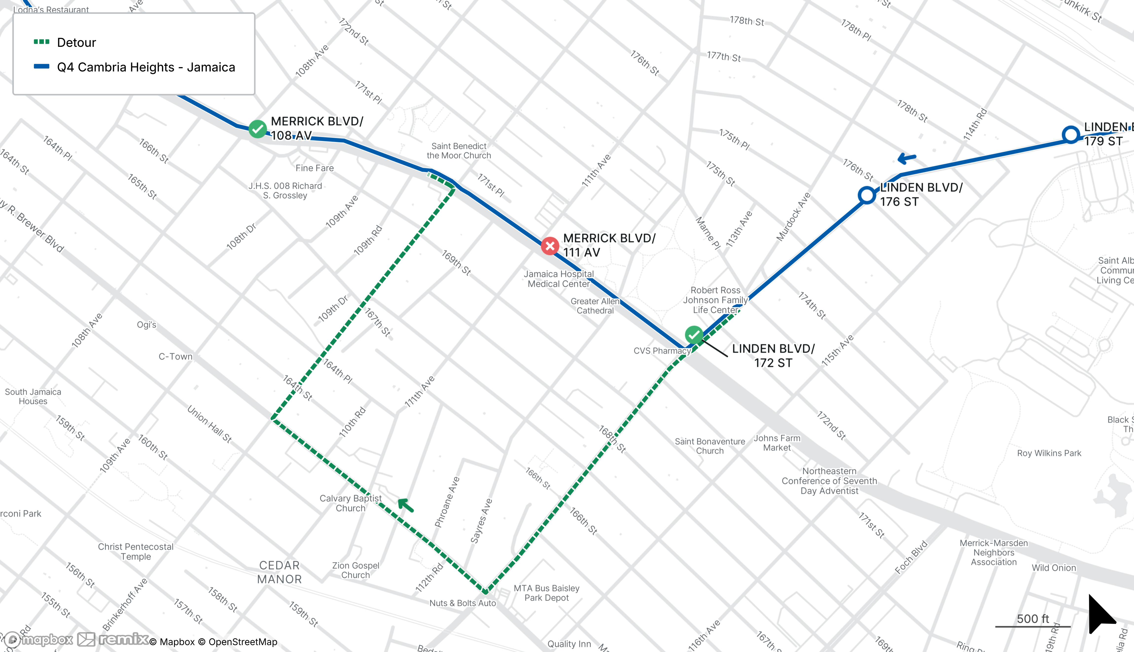 Starts Sat Dec 20 Until Sat Dec 20For northbound service, consider the stops on Linden Blvd at 172nd St or Merrick Blvd at 108th Ave.