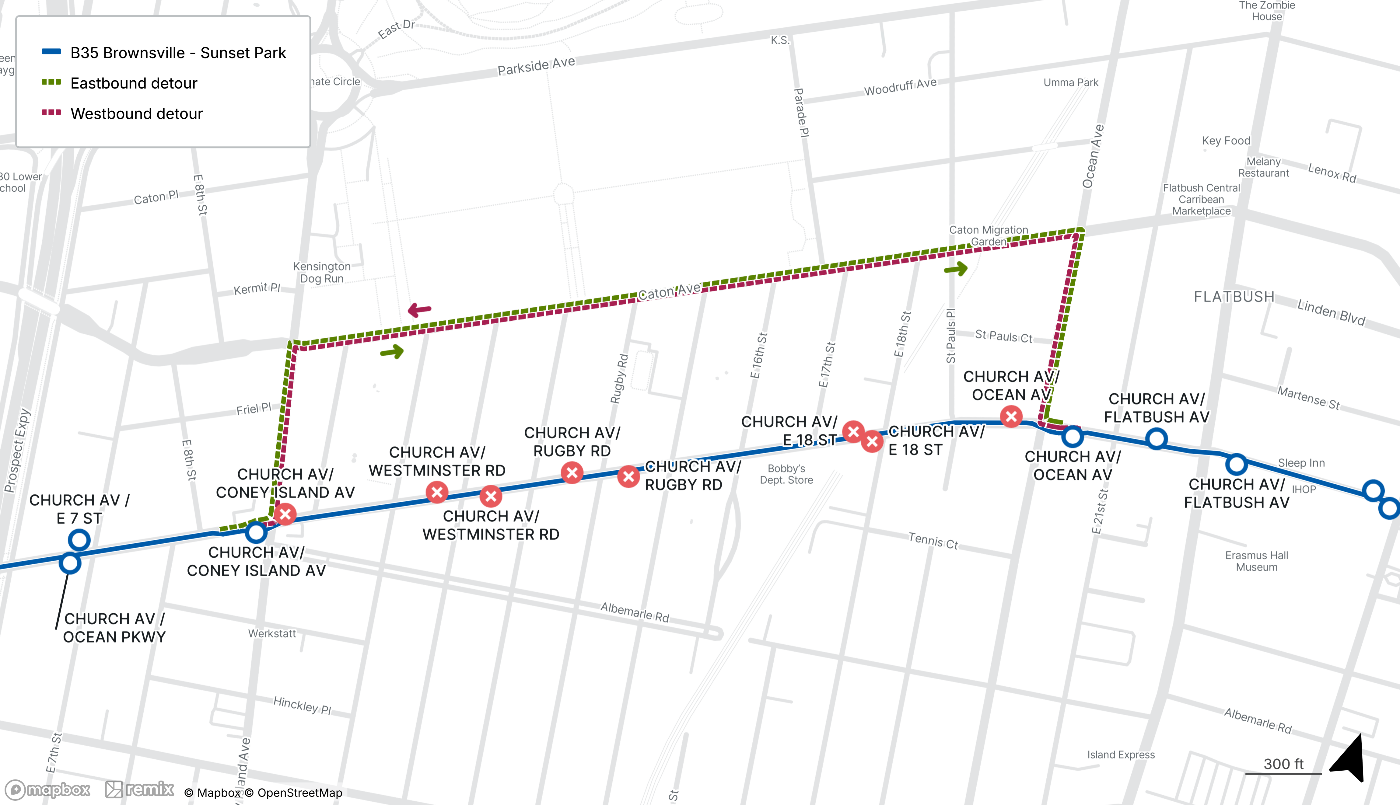 B35 buses will be detoured from Church Ave between Coney Island Ave and Ocean Ave
