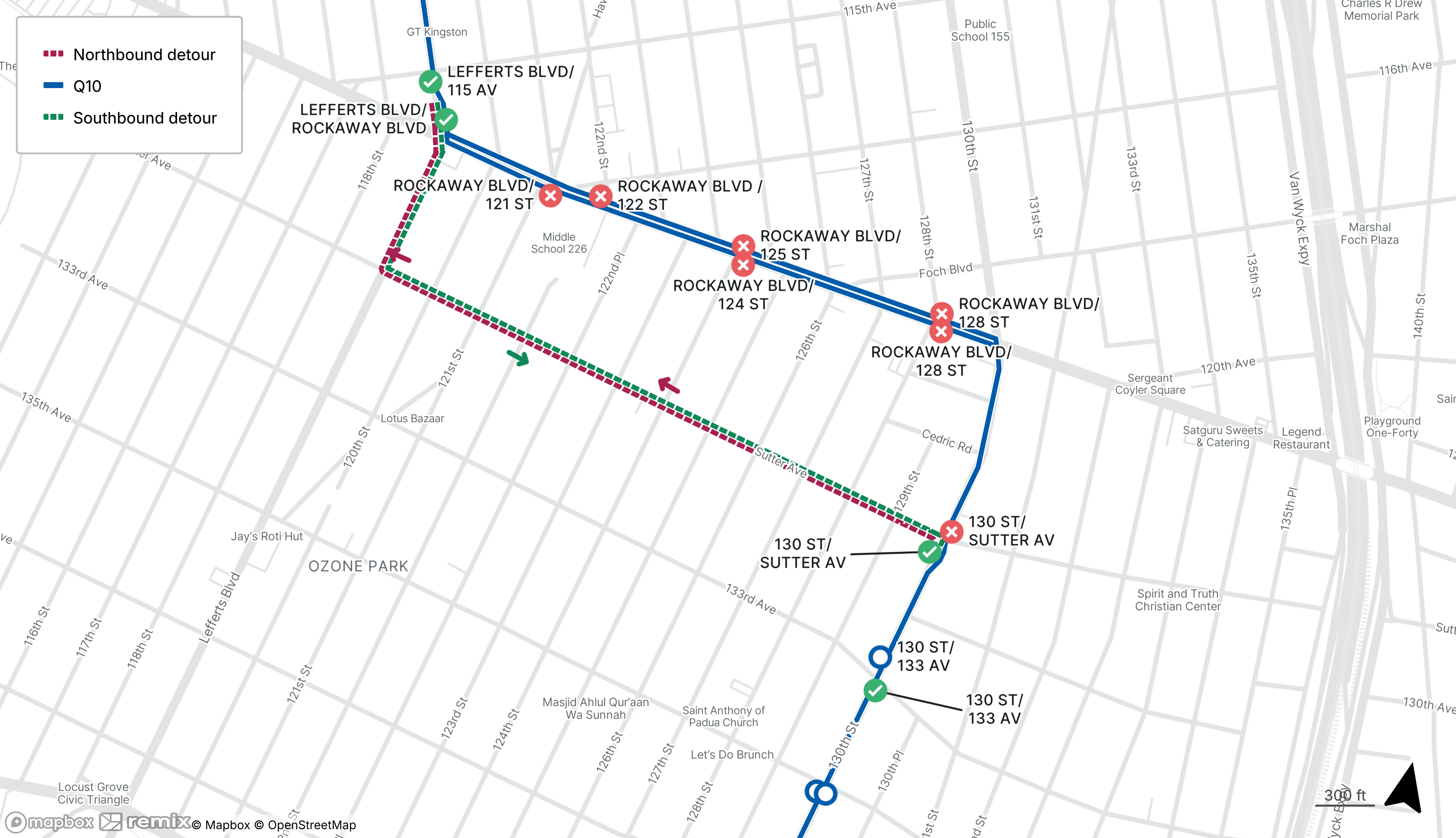 Starts Sat Dec 6 Until Sat Dec 6For northbound service, use the stops on 130th St at 133rd Ave or Lefferts Blvd at Rockaway Blvd.