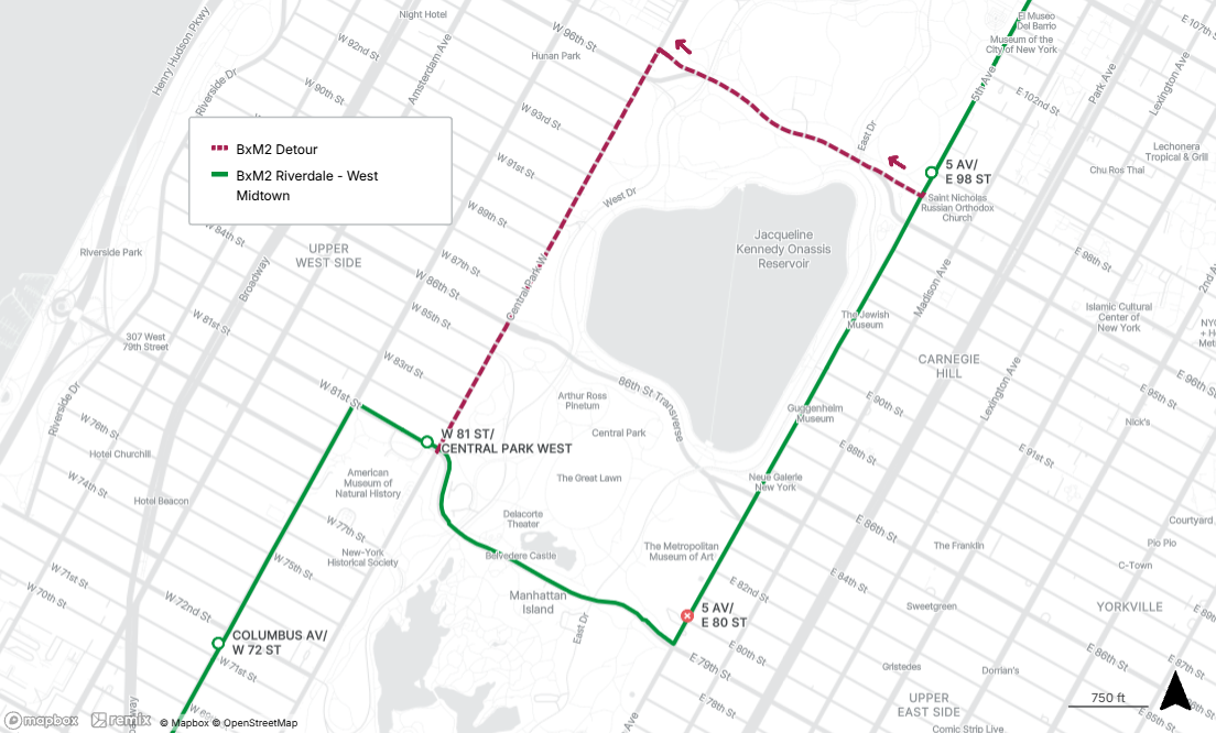 Northbound BxM2, BxM3 and BxM4 stops on Madison Ave at E 99th St and E 123rd St will be closed