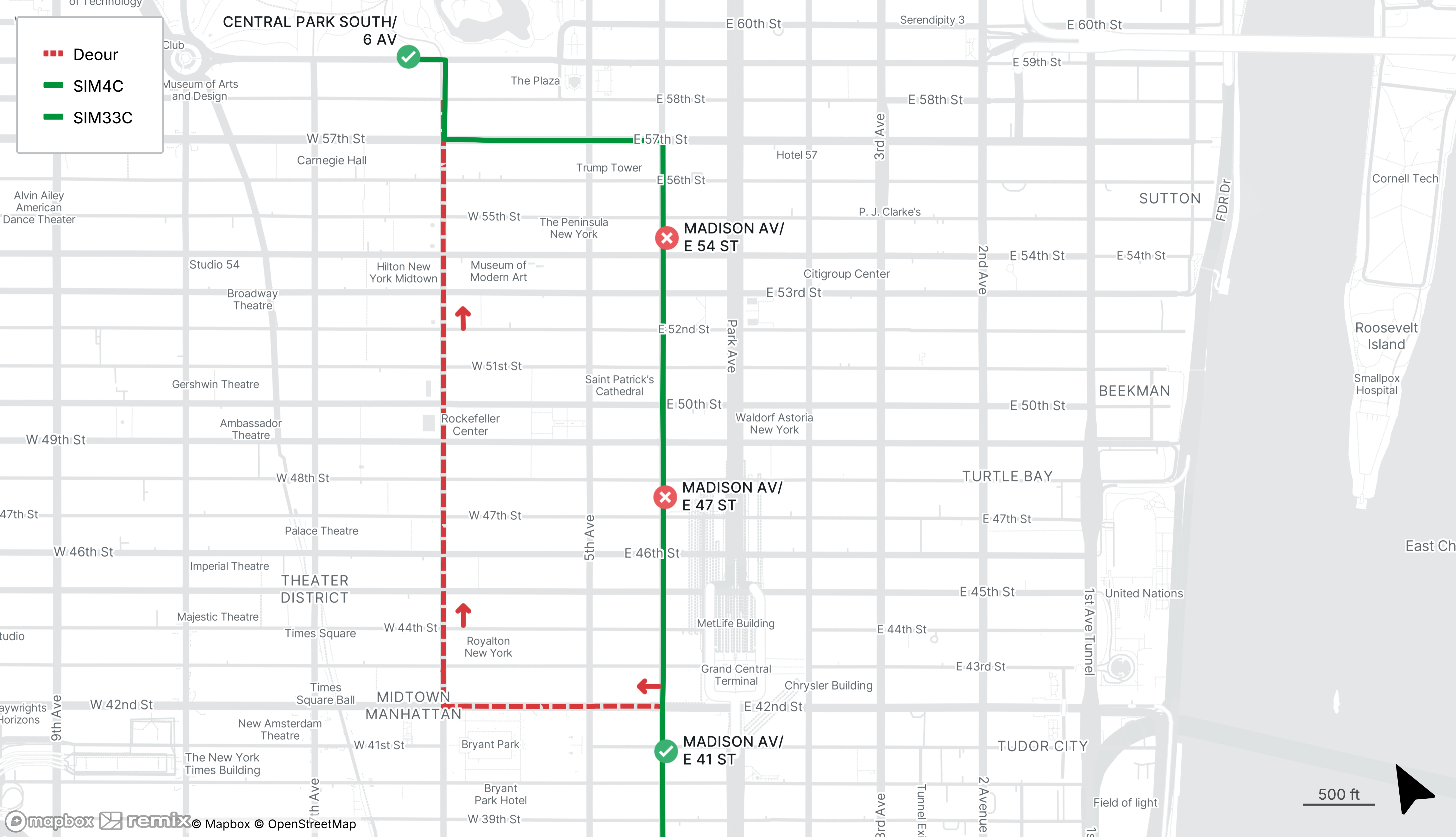 Northbound SIM4C and SIM33C stops on Madison Ave at E 47th St and E 54th St will be closed