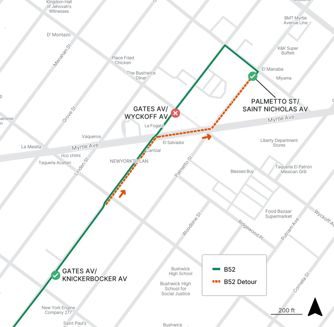 Starts Tue Nov 11 Until Tue Nov 11For service, consider the stops on Gates Ave at Knickerbocker Ave or Palmetto St at St Nicholas Ave.