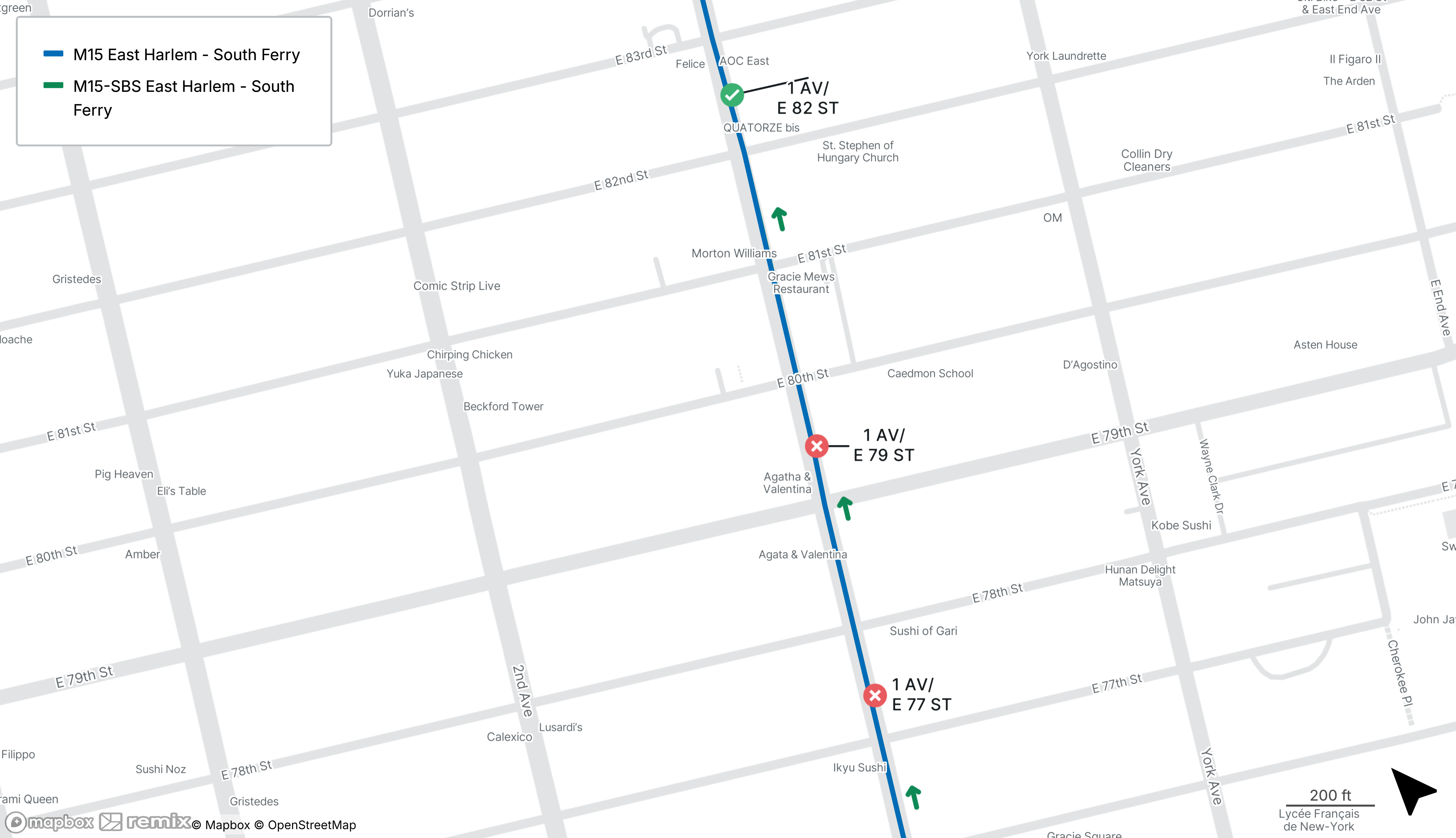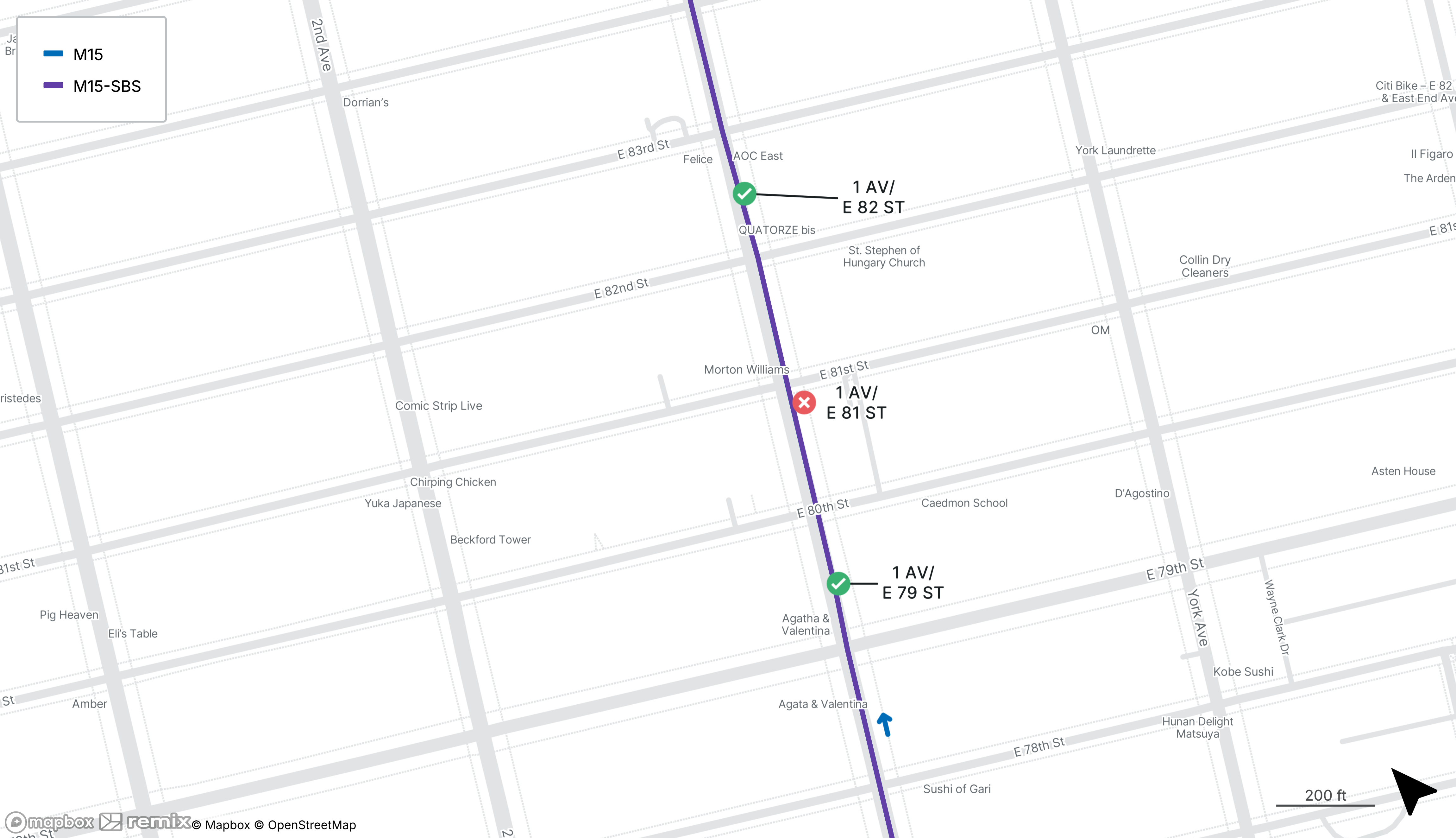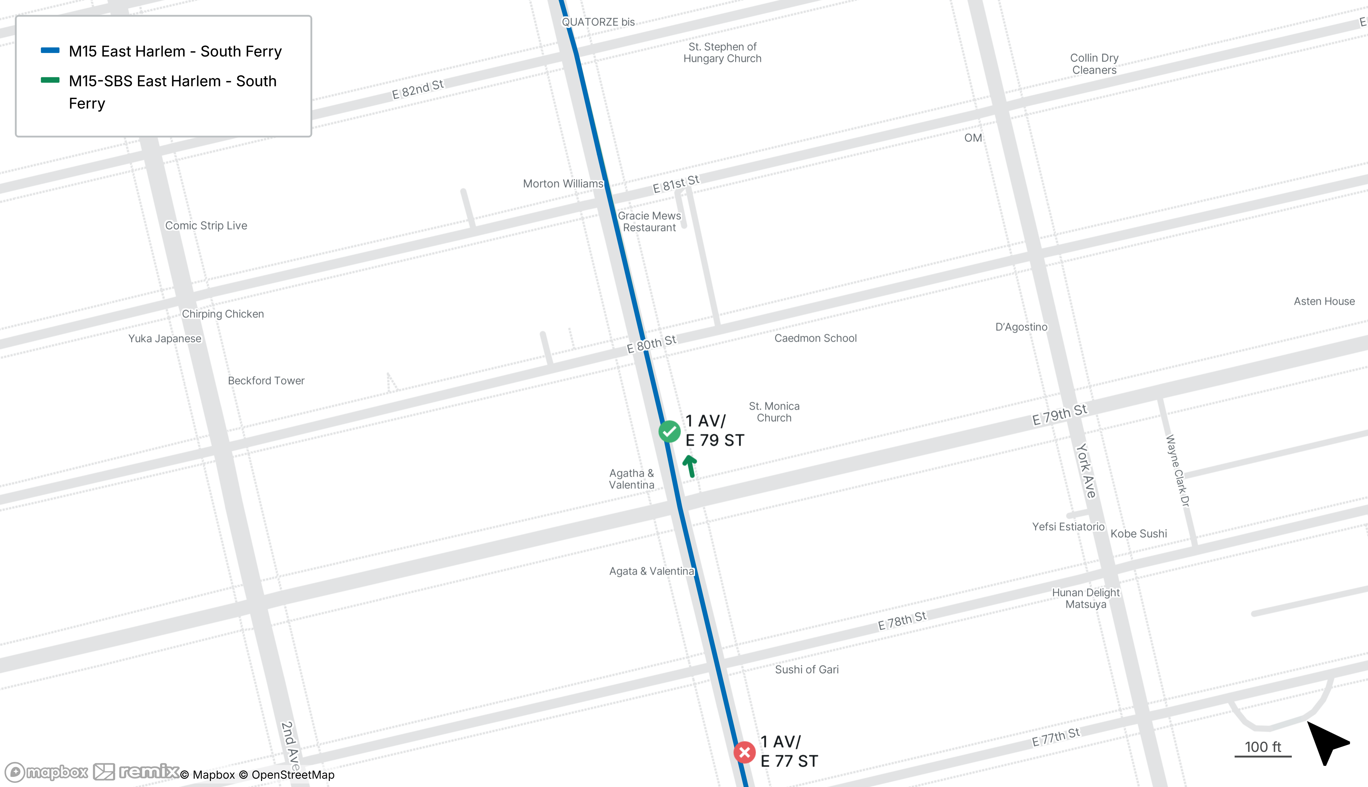 Northbound M15 and M15-SBS stop on 1st Ave at 79th has been restored