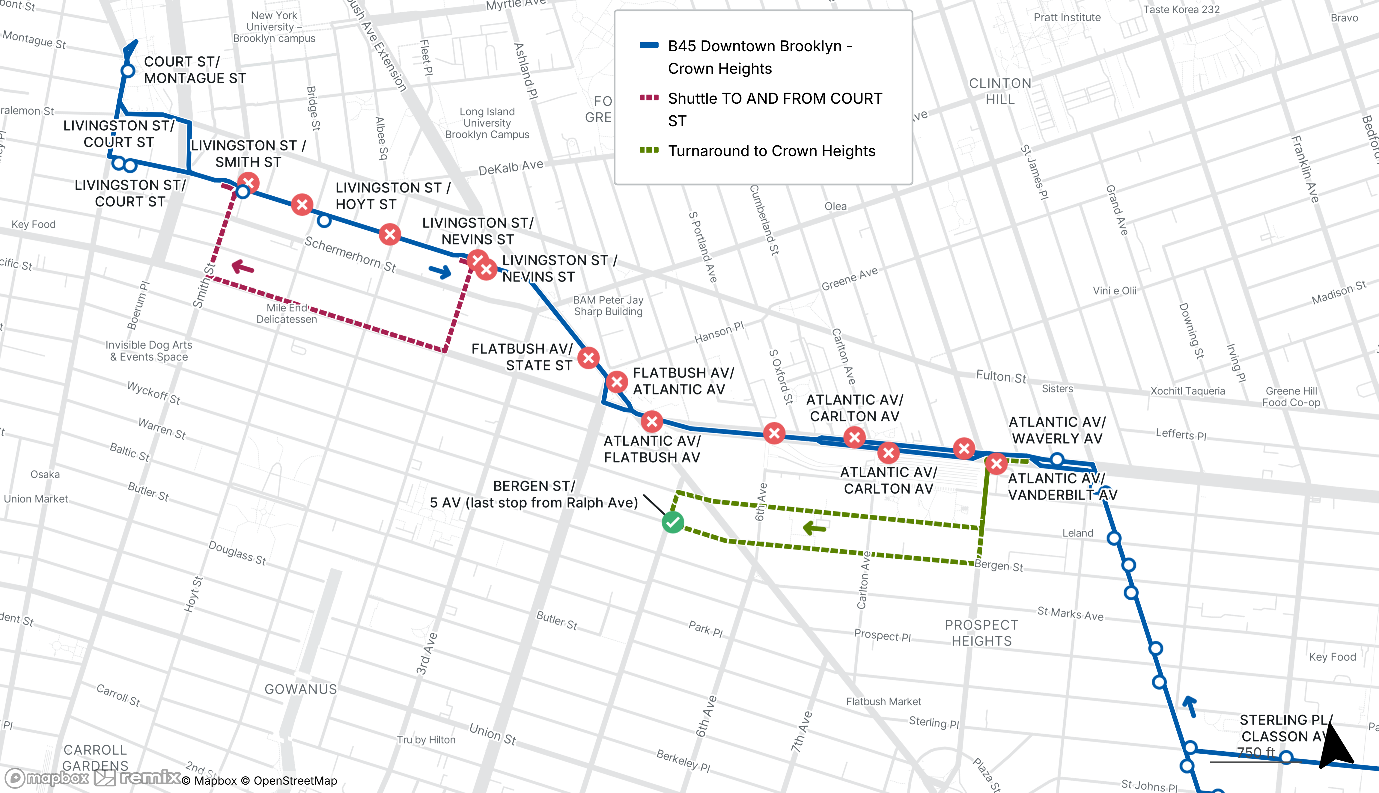 StartedB45 operates in two sections between Downtown Brooklyn and Crown Heights