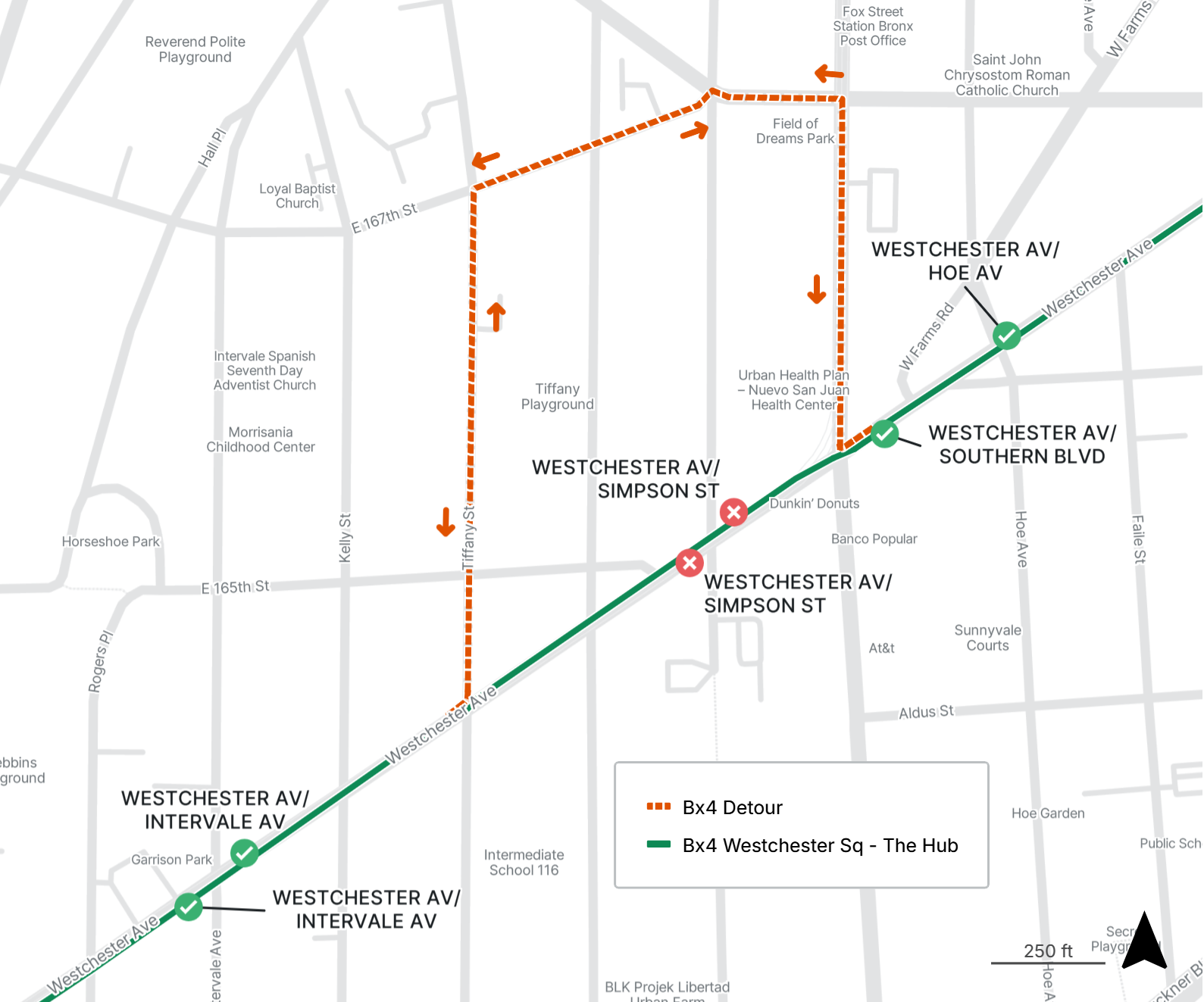 Bx4 stops on Westchester Ave at Simpson are closed in both directions