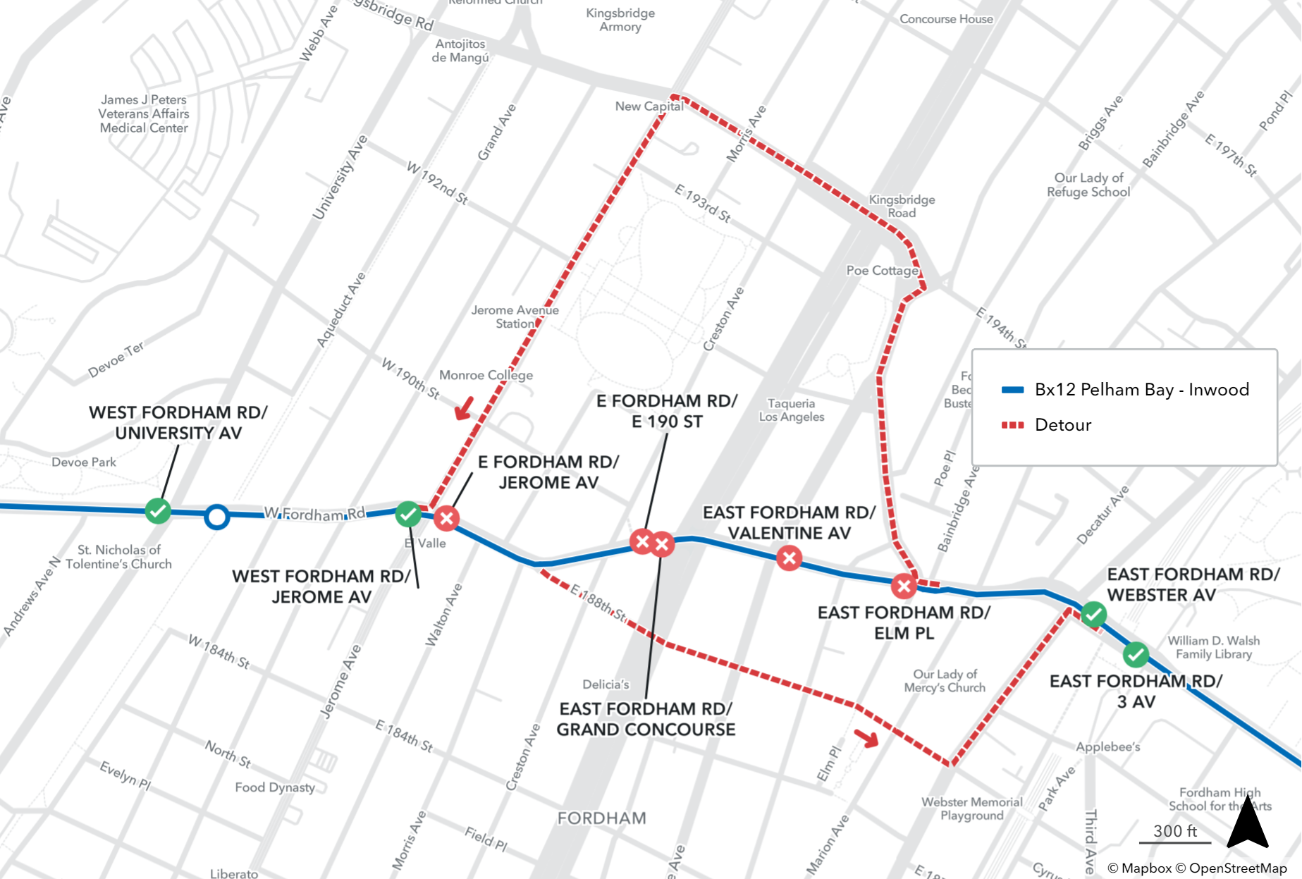 Bx12 stops along E Fordham Rd between Kingsbridge Rd and Jerome Ave are closed in both directions