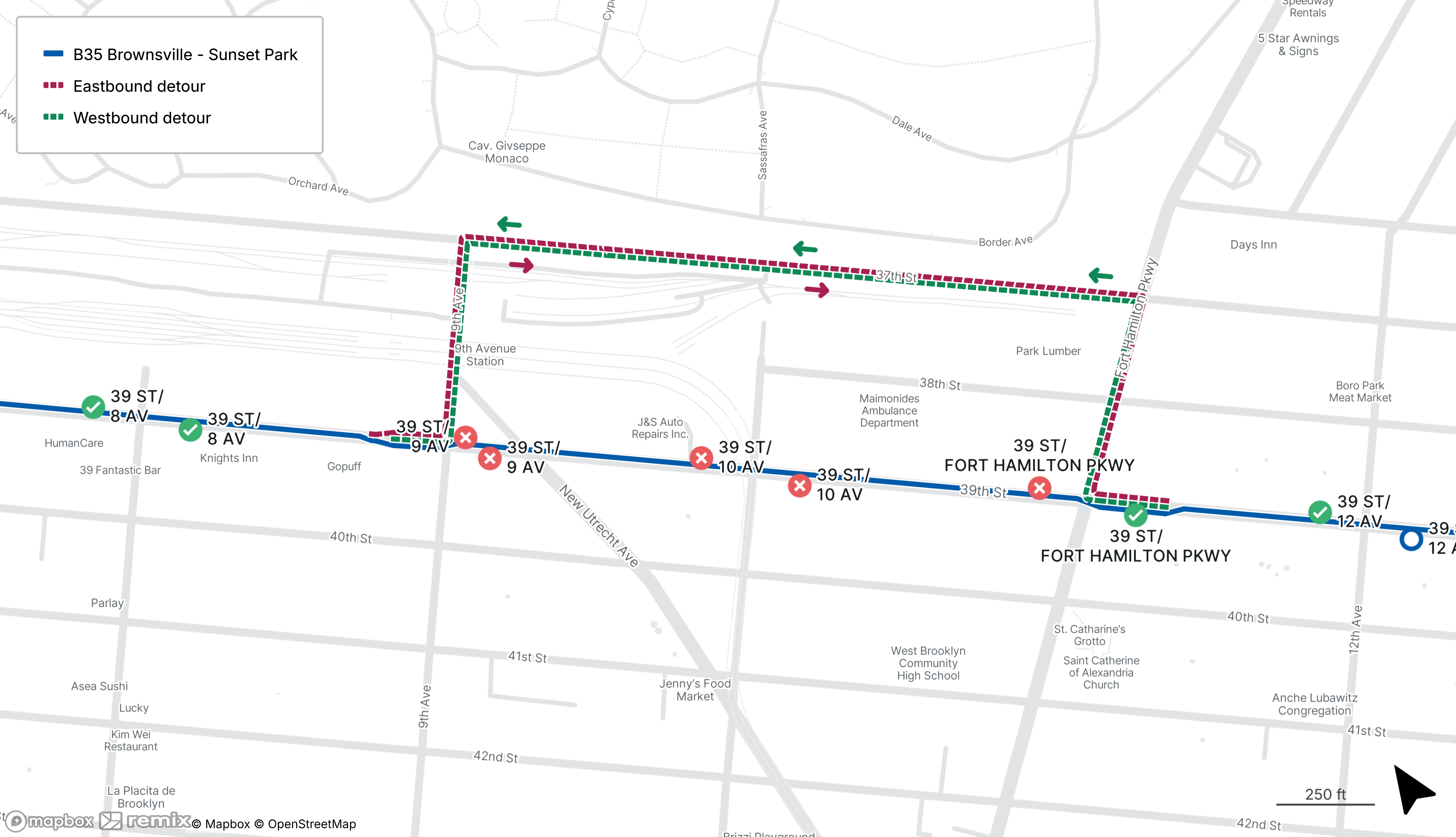 B35 limited will be detoured from 39th St between 9th Ave and Fort Hamilton Pkwy